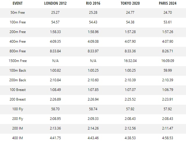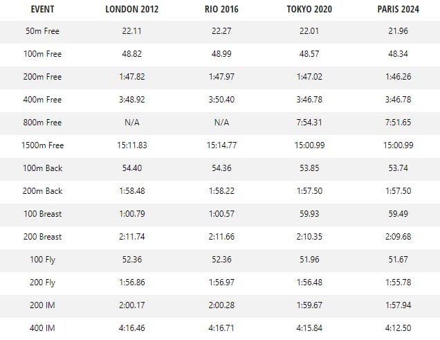 Париж-2024: утверждены Олимпийские нормативы по плаванию