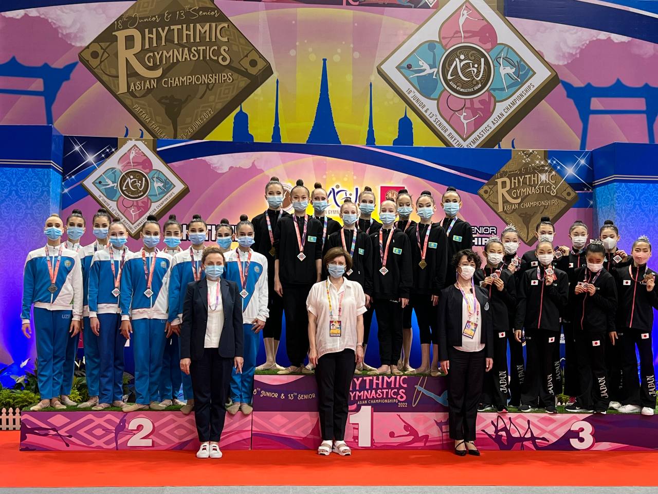 Тахмина Икромова, Сабина Ташкенбаева и Ёсмина Рахимова набрали самые высокие баллы в одиночной программе, Шахзода Ибрагимова, Наргиза Джуманиёзова, Нилуфар Азамова, Мумтоза Исхокзода, Хуршида Абдурауфова и Мария Пак-в групповых упражнениях. В этой программе казахстанские гимнастки завоевали серебряные медали, бронза досталась сборной Японии.