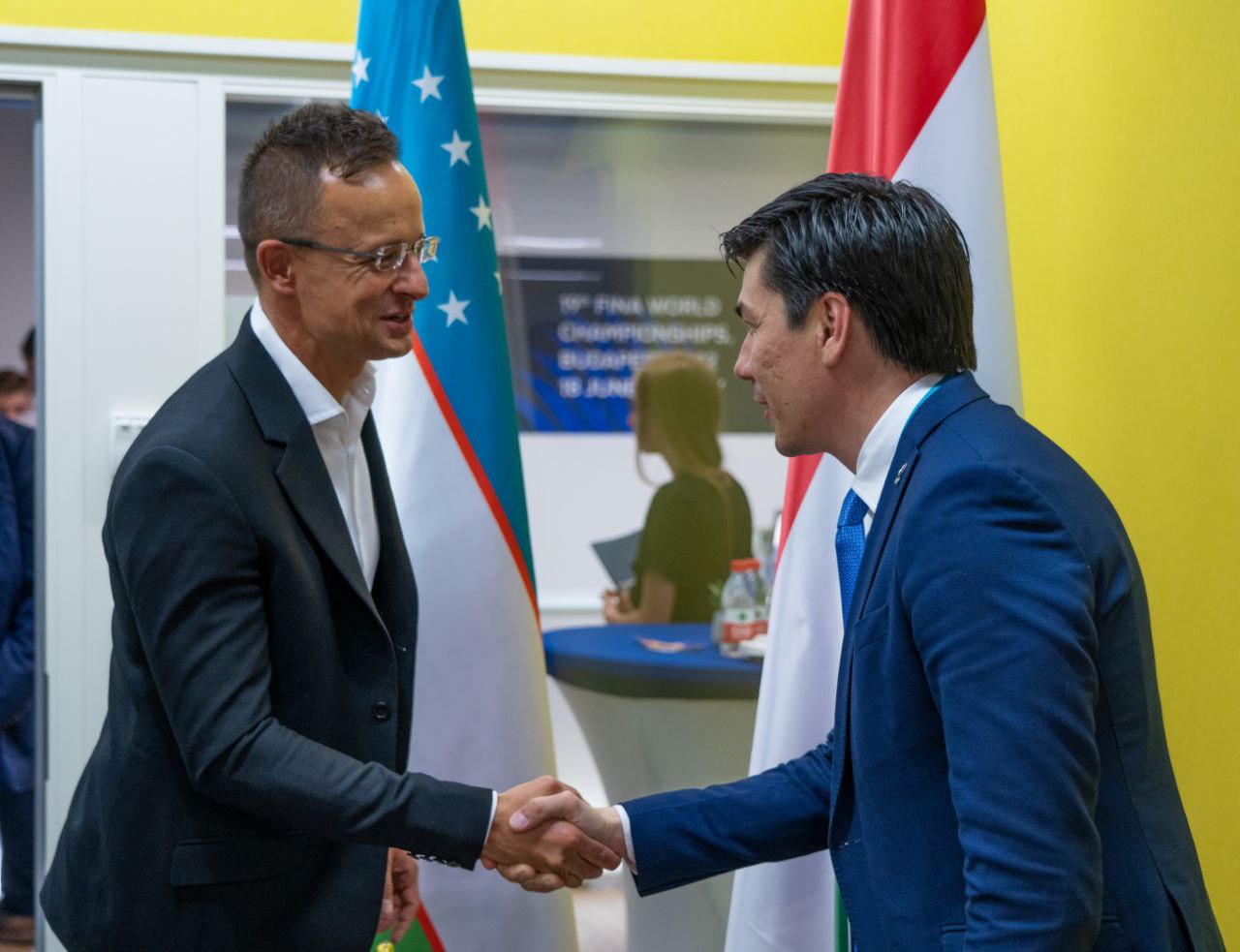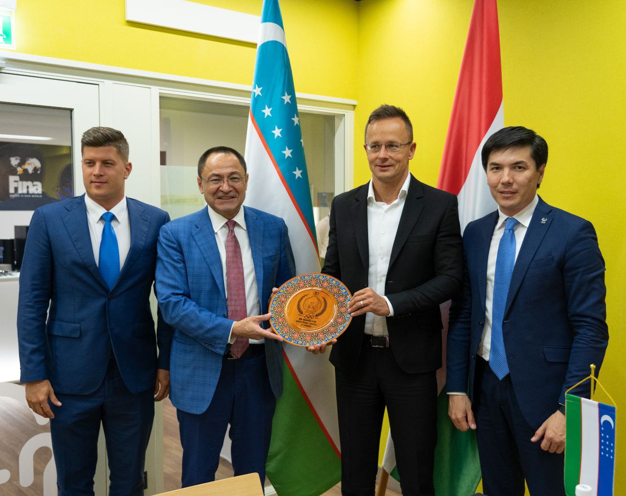 Министр Развития спорта Республики Узбекистан Адхам Икрамов и Генеральный секретарь НОК Ойбек Касимов в ходе рабочего визита в Венгрию провели встречу с министром Иностранных дел и внешней торговли Венгрии Сиярто Петером.