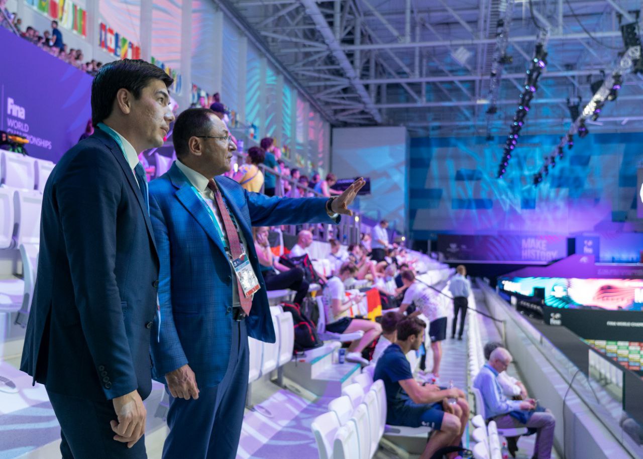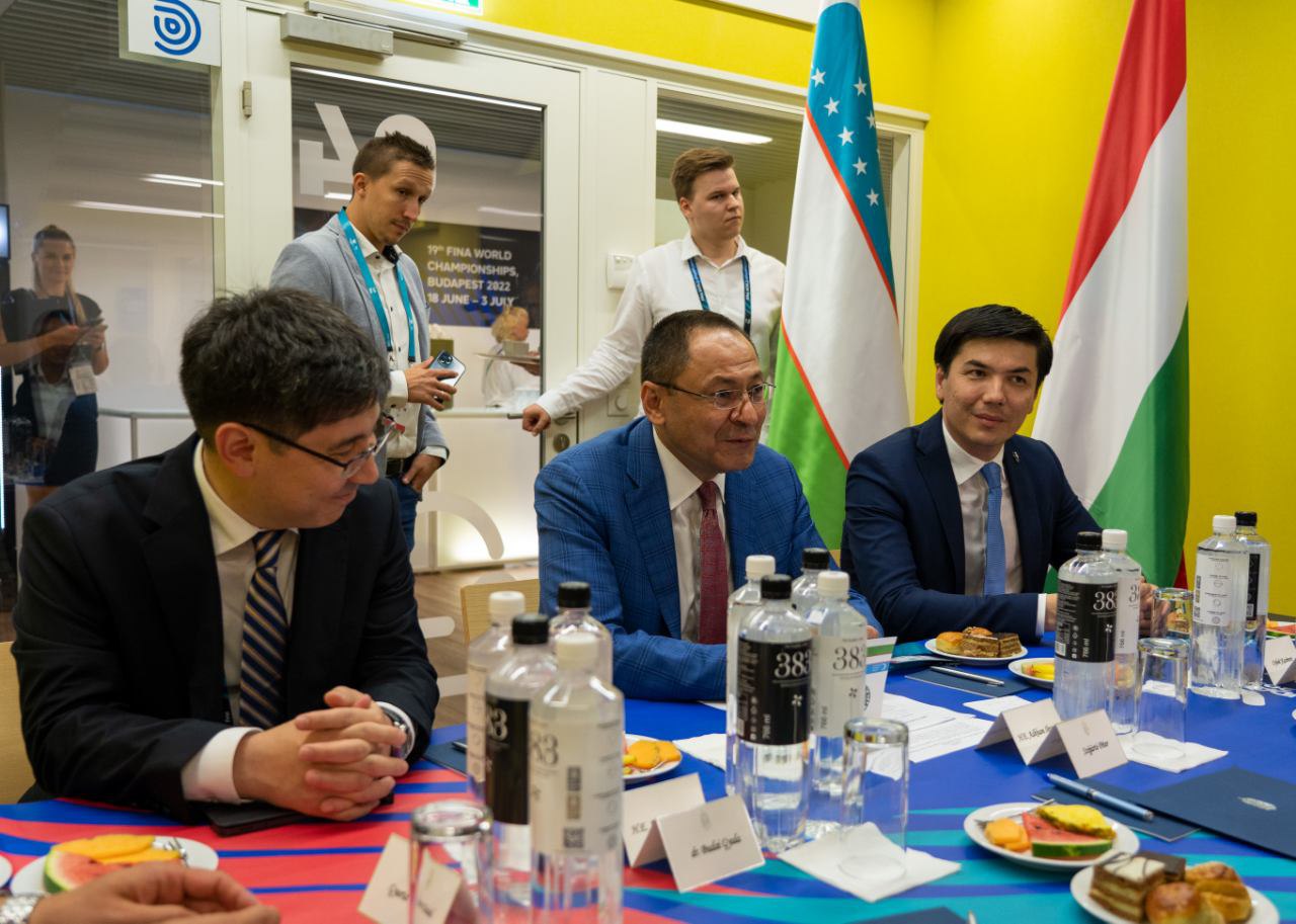 Также представители делегации Узбекистана посетили арену “Дуна”, в эти дни принимающую чемпионат мира по водным видам спорта, ознакомились с историей её строительства, а также возможностями. В связи с этим хозяева подробно проинформировали отечественных официальных лиц об этом объекте.
