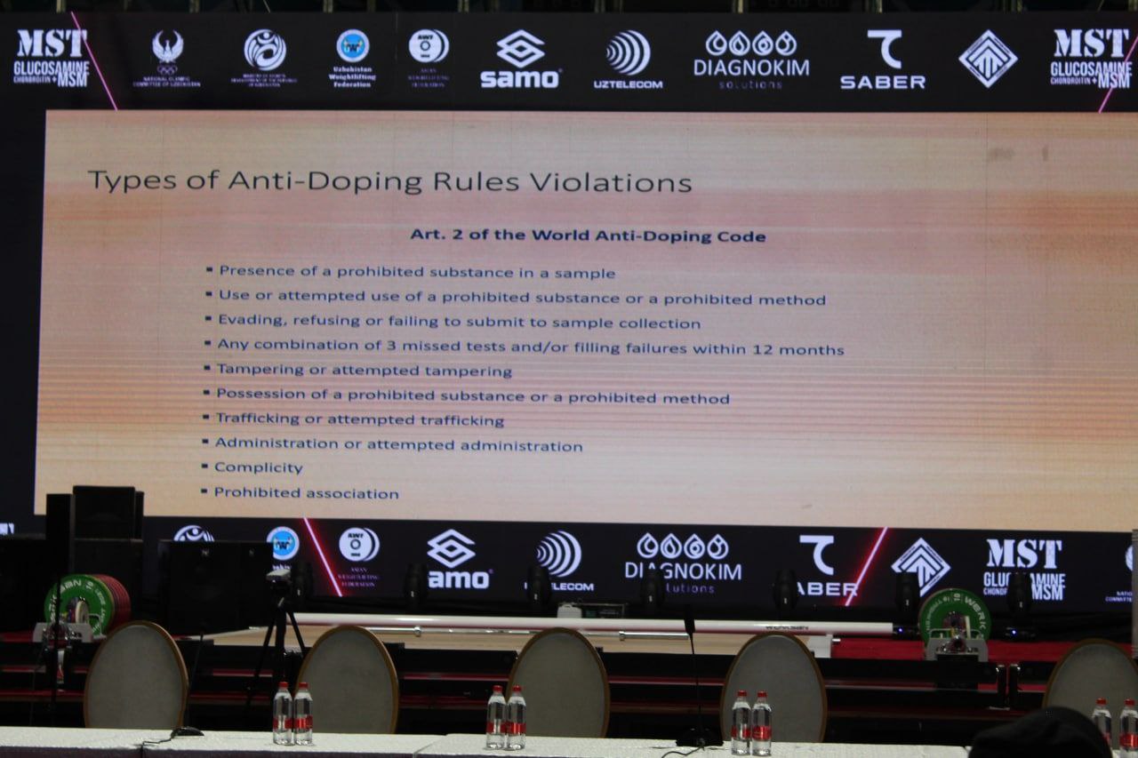 В рамках соревнований специалистами Национального антидопингового агентства Узбекистана был проведён обучающий семинар для зарубежных экспертов и спортсменов на тему “Виды антидопинговых нарушений и порядок осуществления допинг-контроля”.