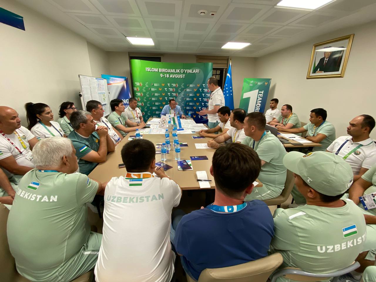 После этого состоялось совещание с представителями штаба. Заместитель председателя НОК Шерзод Ташматов подробно рассказал о деятельности делегации Узбекистана, участии спортсменов, работе, проделанной в штабе. Адхам Икрамов отметил, что успех каждого будет зависеть от тщательного выполнения всеми своей работы. Кроме того, он поговорил с тренерами каждой сборной о состоянии атлетов и ожидаемых результатах.