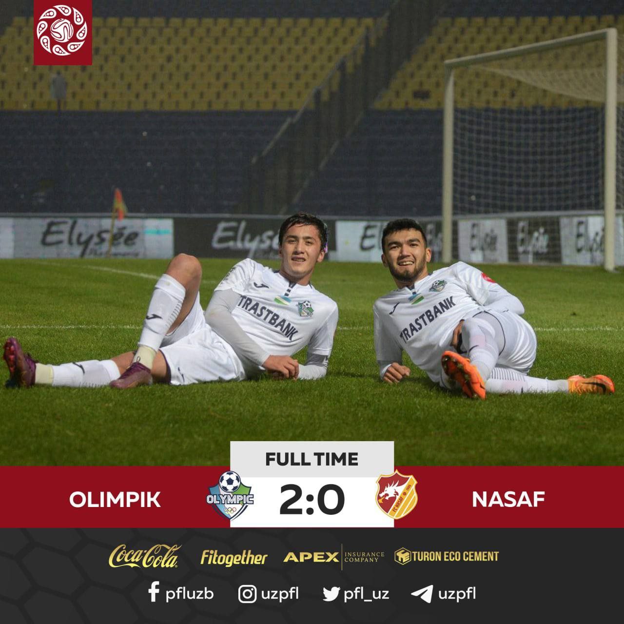 В последнем туре “Олимпик” принимал “Насаф”, одного из претендентов на главный приз. Прошедший матч в бескомпромиссной борьбе завершился победой подопечных Тимура Кападзе со счётом 2:0. Таким образом, Олимпийцы завершили дебютный для них сезон на 6-м месте!