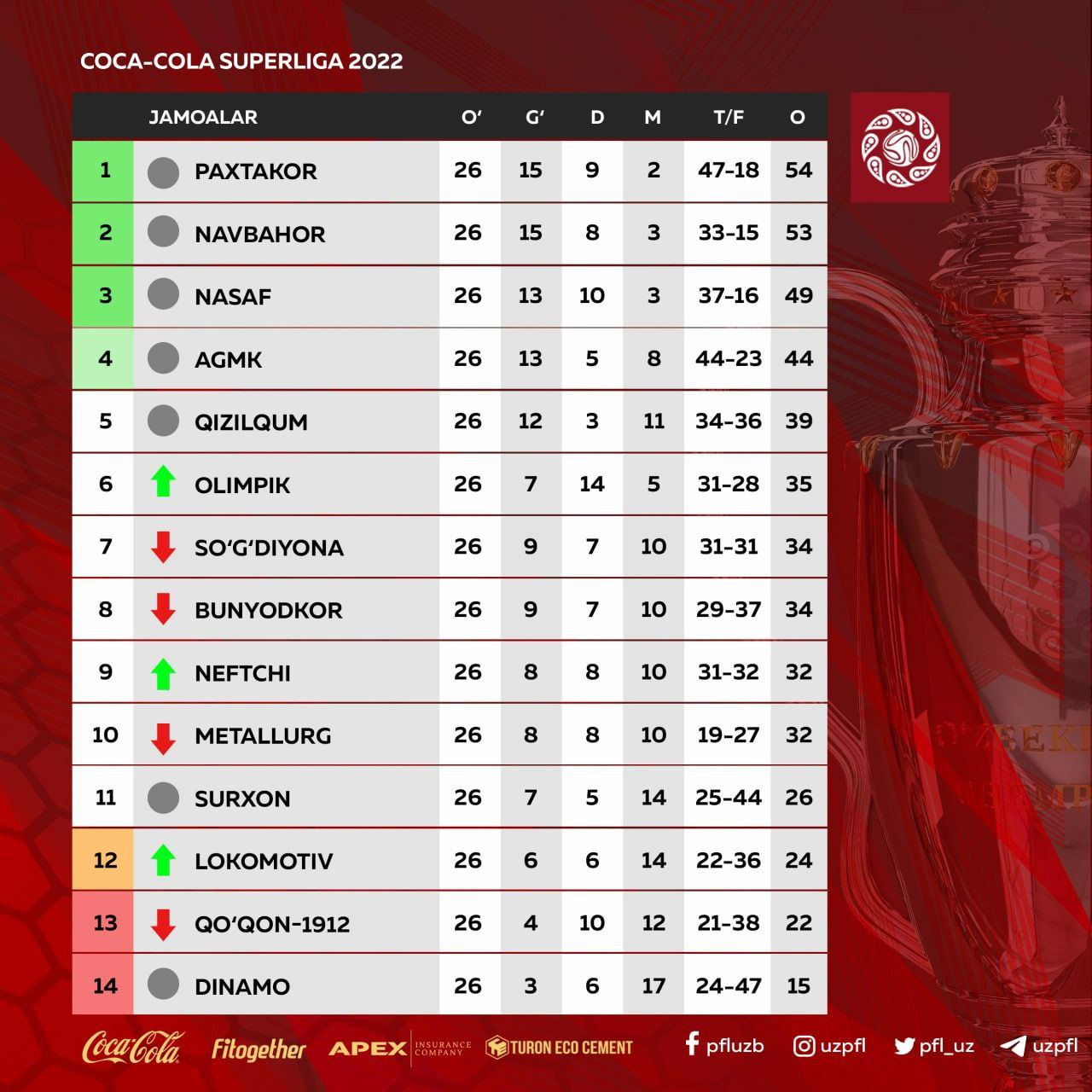 Суперлига "Coca-Cola" Узбекистана, 26 тур