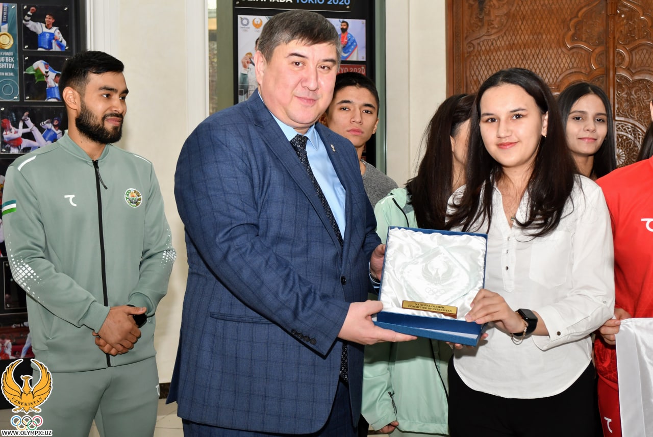 В беседе приняли участие серебряный призёр Азиатских игр Гуанчжоу-2010 и континентального первенства по художественной гимнастике Замиражон Санокулова, победительница Кубка мира по фехтованию на саблях, призёр чемпионата мира Зайнаб Дайибекова, поебдительница недавнего чемпионата Азии среди взрослых по боксу Навбахор Хамидова, первый чемпион мира из Узбекистана по каратэ WKF, призёр Всемирных спортивных игр Достон Отаболаев.