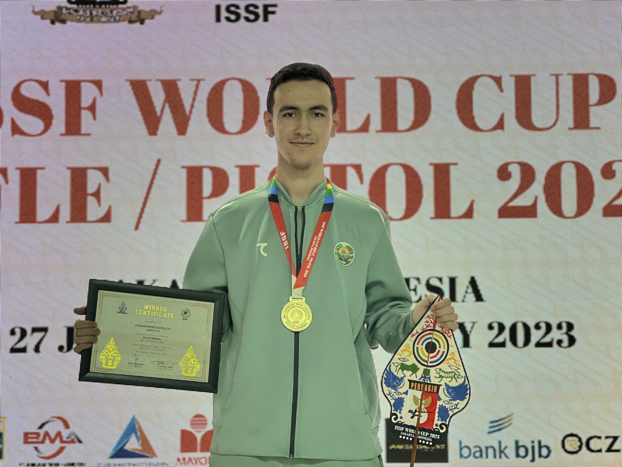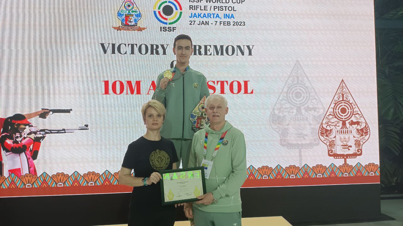 Ранее мы сообщали, что сборная Узбекистана по стрельбе примет участие в этапе Кубка мира в Индонезии. Сегодня Мухаммад Камалов, участвовавший в программе стрельбы из пневматического пистолета на 10 метров среди мужчин, завоевал золотую медаль.