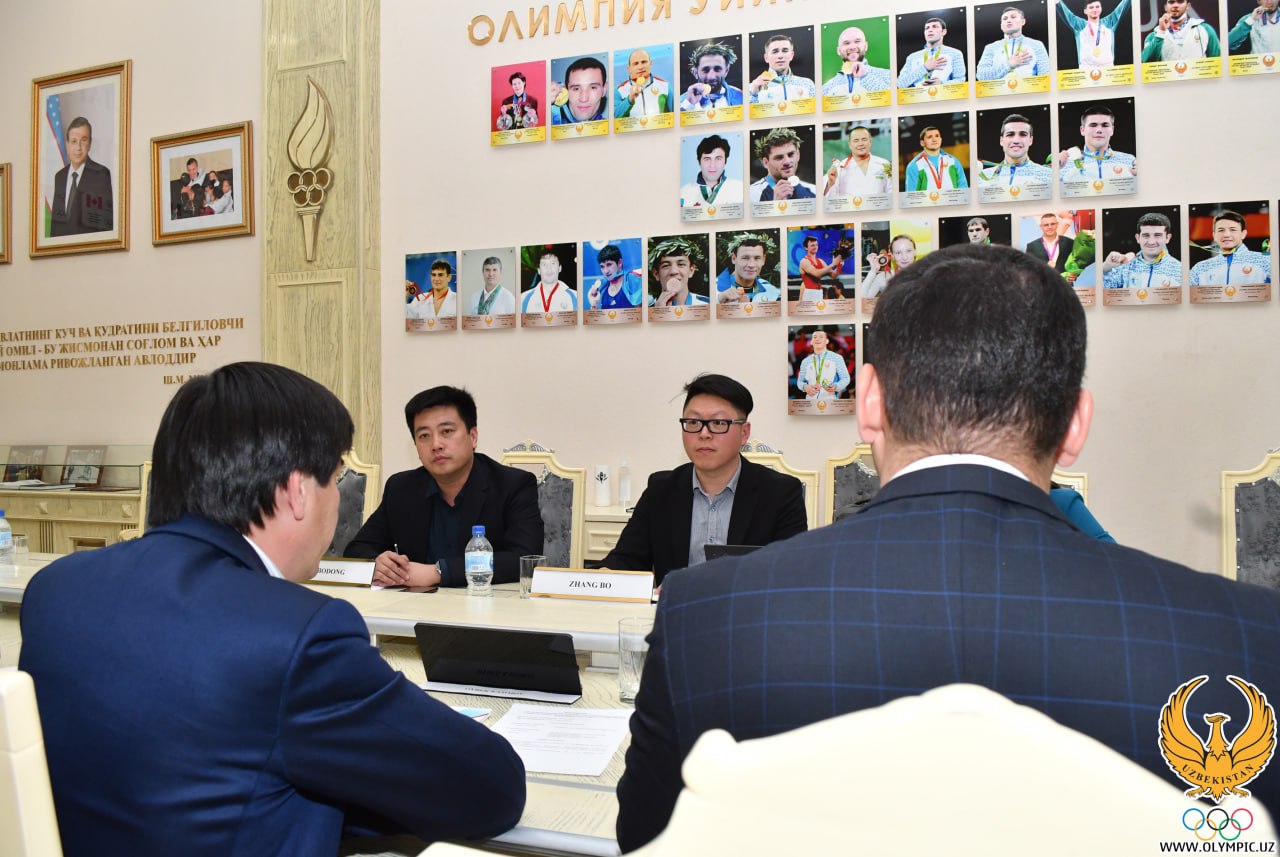 Представители китайской компании “CNSG SPORTS DEVELOPMENT CO., LTD” ответственный за строительные работы в зарубежных странах Сунь Бодонг и руководитель консультационно-дизайнерского отдела Чжан Бо посетили Национальный Олимпийский комитет Узбекистана. Гостей принял Генеральный секретарь НОК Ойбек Касимов. Стороны провели переговоры о налаживании взаимного сотрудничества.