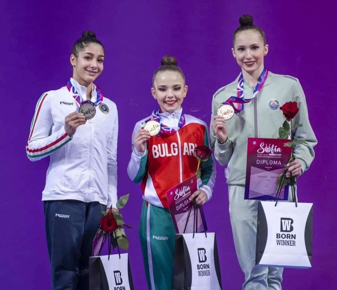 В Софии (Болгария) завершился очередной этап Кубка мира по художественной гимнастике. В последний день соревнований представительница сборной Узбекистана Тахмина Икромова завоевала по 1 золотой и бронзовой медали. Наша соотечественница поднялась на высшую ступень пьедестала почёта в упражнении с лентой. А в программе с мячом удостоилась бронзовой награды.