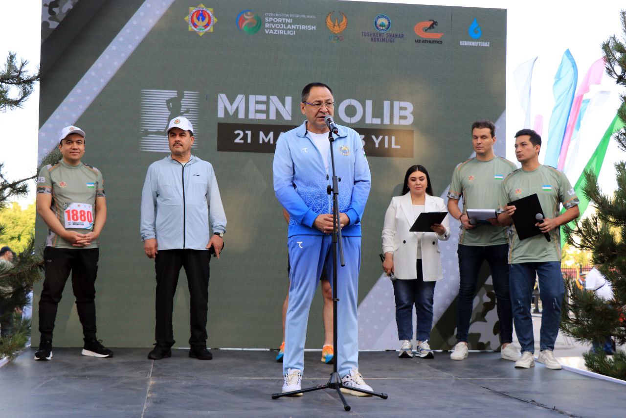 Сегодня в Ташкенте состоялся военно-патриотический массовый забег “Мен голиб” (Я победитель) с участием представителей Вооруженных сил и силовых структур Узбекистана, курсантов военных учебных заведений, спортсменов-любителей и профессионалов. Ранним утром около 2000 сторонников здорового образа жизни собрались на территории спортивного комплекса “Хумо Арена” для участия в беге на 3 км и 10 км.