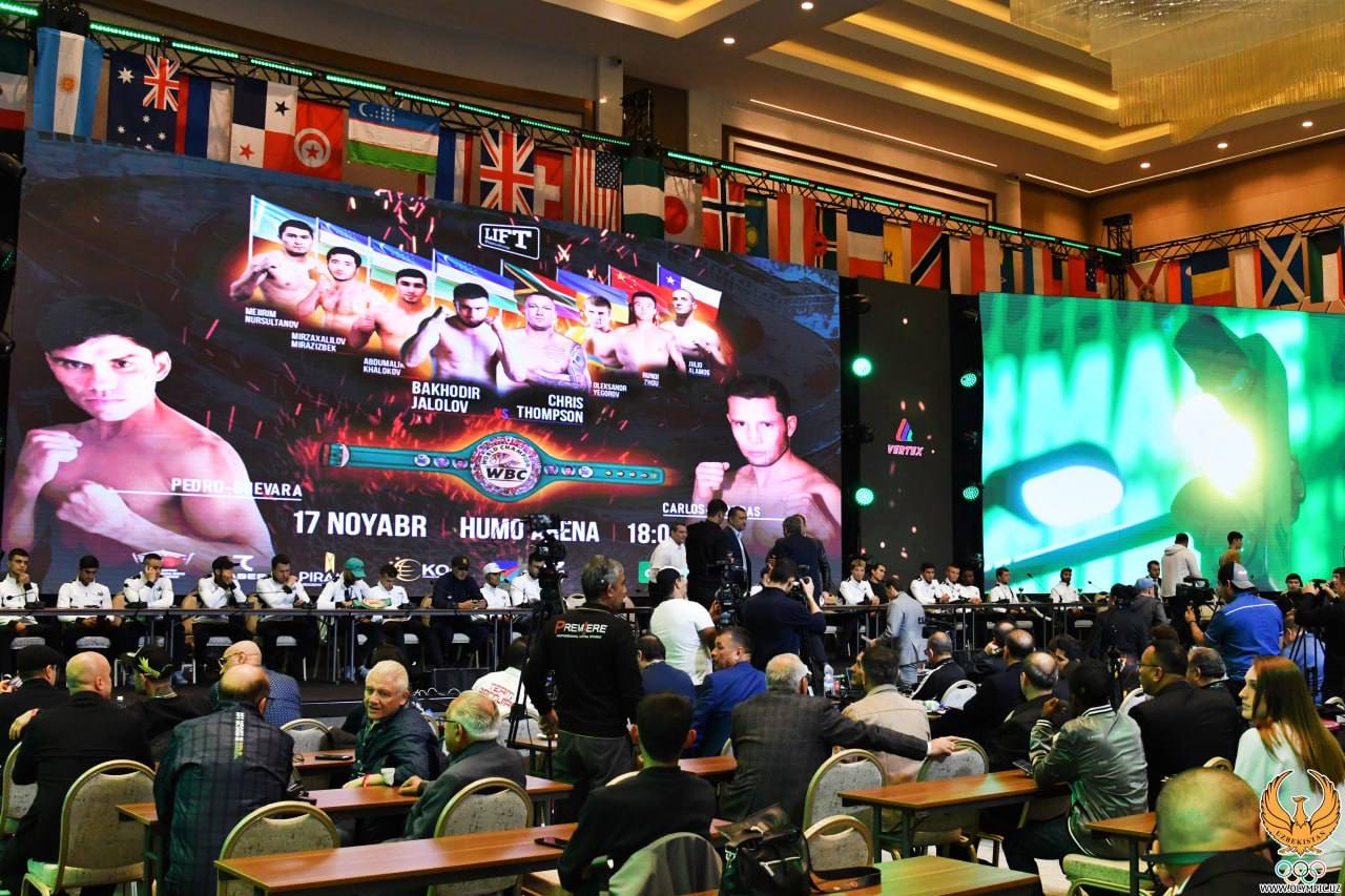 В преддверии вечера профессионального бокса, который состоится 17 ноября в «Humo Arena», состоялась пресс-конференция. В ней приняли участие президент Всемирного боксёрского совета (WBC) Маурисио Сулейман, первый вице-президент Федерации профессионального бокса Узбекистана Гафур Рахимов, звезда мирового бокса Эвандер Холифилд, отечественные мастера кожаной перчатки, которые будут защищать честь страны на домашней арене через 2 дня, а также сотрудники СМИ.