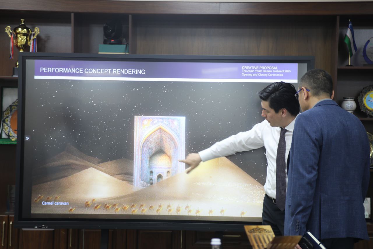 В ней во главе с Адхамом Икрамовым приняли участие руководство Министерства спорта, и Генеральный секретарь НОК Ойбек Касимов. На встрече зарубежные специалисты представили свою презентацию для торжественных церемоний юношеских Азиатских и Пара Азиатских игр Ташкент-2025, изучив многовековую историю и культуру узбекского народа.
