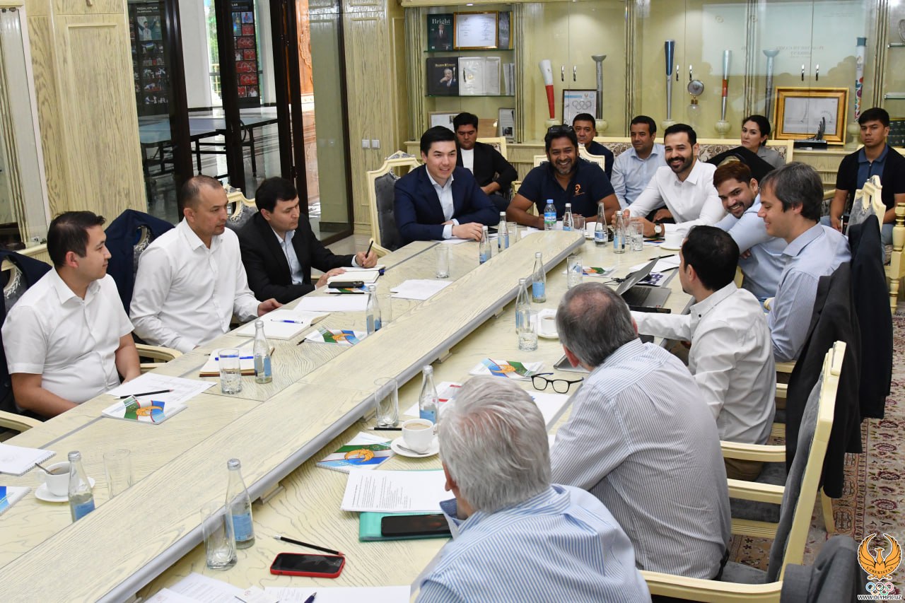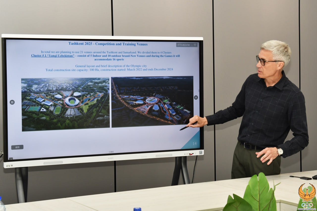 В начале визита в Национальном Олимпийском комитете состоялась встреча с рабочей группой НОК. В ней присутствовали представители НОК во главе с Ойбеком Касимовым, официальные лица Министерства спорта и ОСА. Сначала гостям была предоставлена полная информация о подготовке к соревнованиям, в частности о видах спорта, которых предполагается включить в программу Игр, а также об аренах, где пройдут состязания атлетов. Во время беседы Ойбек Омилович подчеркнул, что ведётся огромная подготовка к "Ташкент-2025" и что государство полностью поддерживает этот проект.