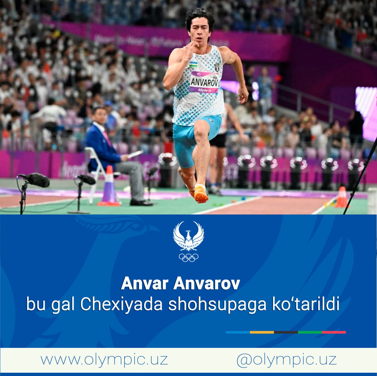 В столице Чехии состоялся международный турнир по лёгкой атлетике "Josef Odlozil Memorial". Представитель сборной Узбекистана Анвар Анваров, участвующий в европейских соревнованиях, завоевал серебряную медаль в данных стартах бронзового уровня Всемирной федерации лёгкой атлетики.