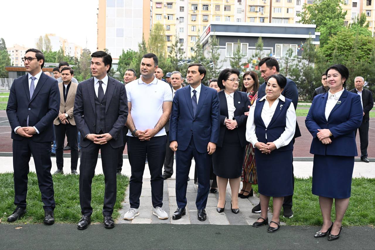 После официальной части церемонии открытия спортивных соревнований под девизом «Здоровый человек — здоровая нация», представители Министерства посетили школу и вручили нагрудный знак директору — Саидхужаевой Нигоре Эргашевне.