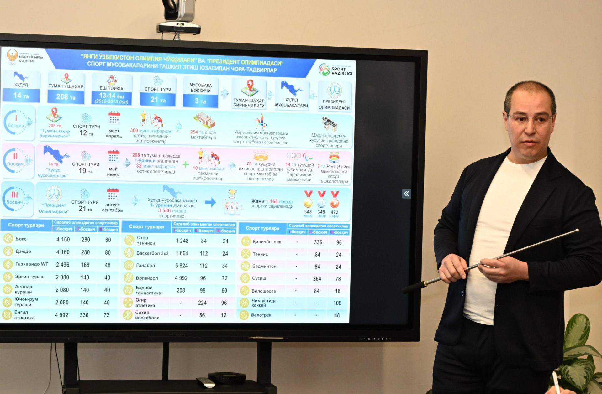 Сегодня при участии руководства Министерства спорта, Национальных Олимпийского и Паралимпийского комитетов состоялось совещание, посвящённое приоритетным задачам на 2026 год. В ходе встречи были рассмотрены вопросы подготовки к предстоящим комплексным стартам, а также к соревнованиям «Олимпийские вершины Нового Узбекистана» и «Президентская Олимпиада». В рамках совещания подробно обсуждены подготовка национальных сборных команд, календарь международных стартов, эффективное использование спортивной инфраструктуры, организация соревнований «Олимпийские вершины Нового Узбекистана» в регионах на высоком уровне, а также системное проведение отборочных этапов.