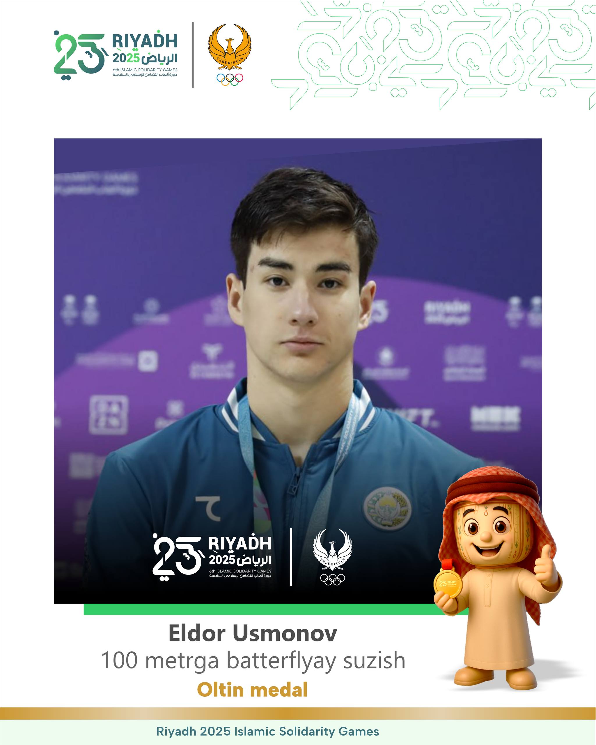 Член сборной Узбекистана по плаванию Элдор Усмонов завоевал золотую награду. Наш соотечественник пер...