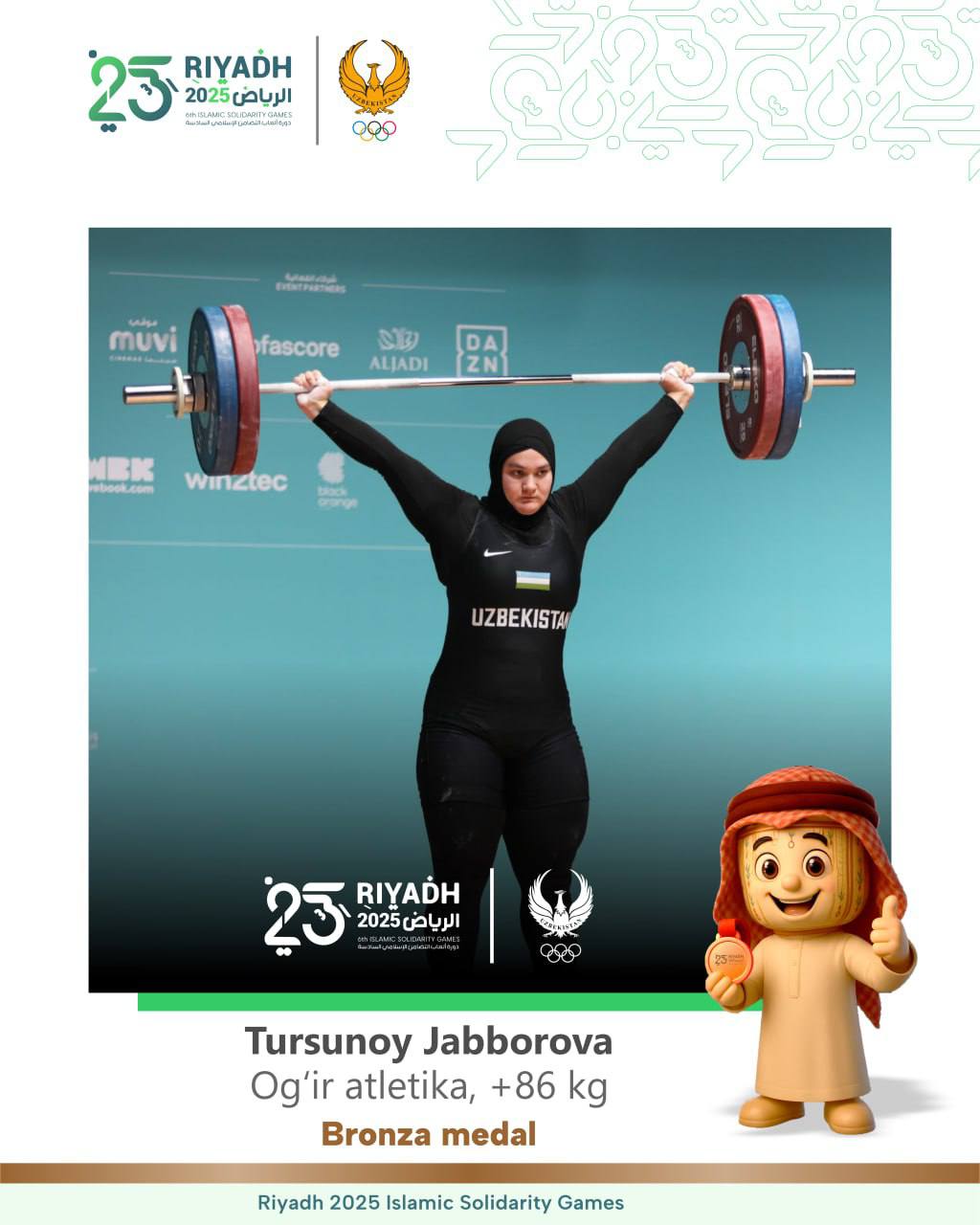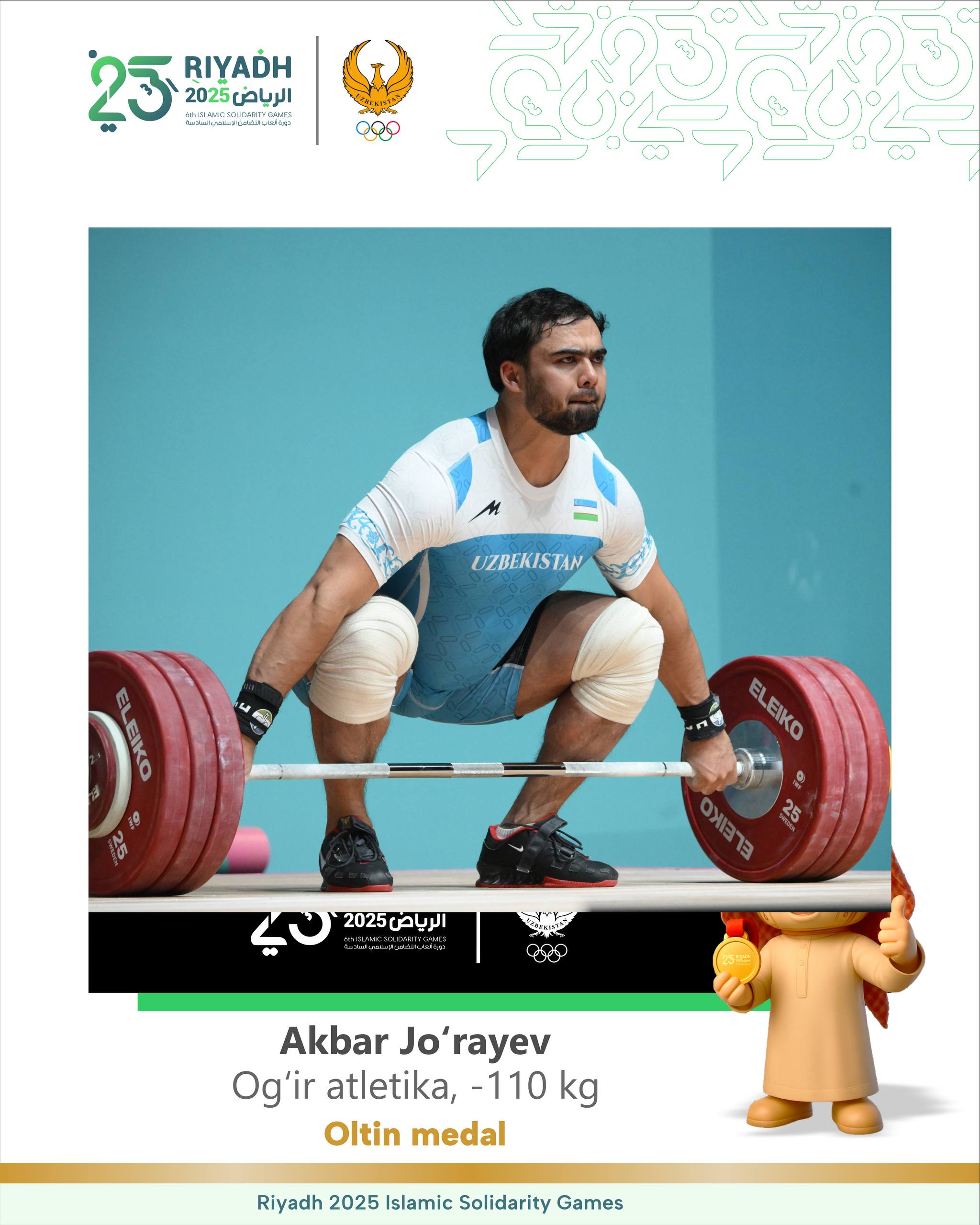 Звезда узбекской тяжёлой атлетики Акбар Джураев стал абсолютным чемпионом VI Игр Исламской солидарно...