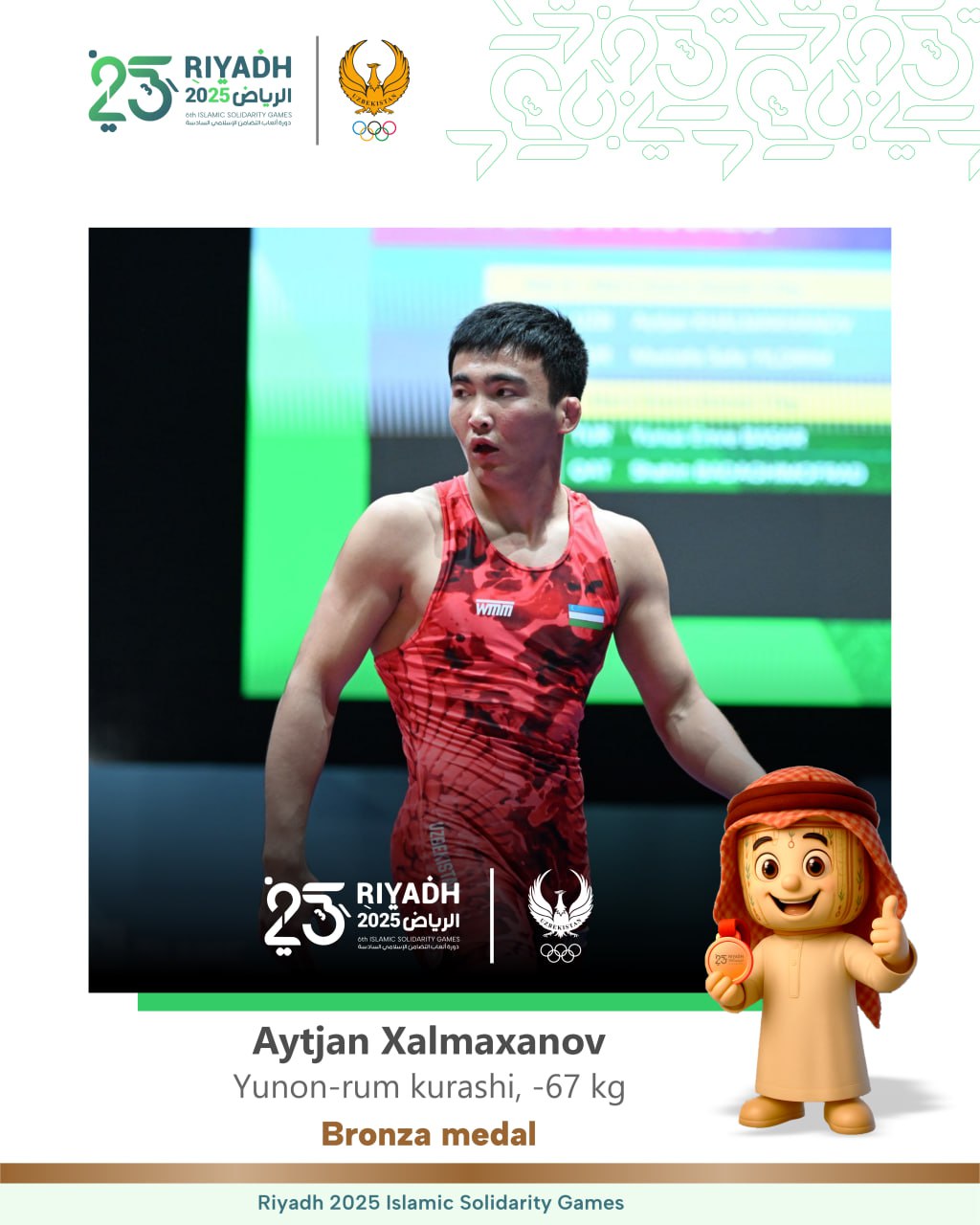Наш греко-римский борец Айтжан Халмаханов пополнил медальную копилку Узбекистана на Играх Исламской ...