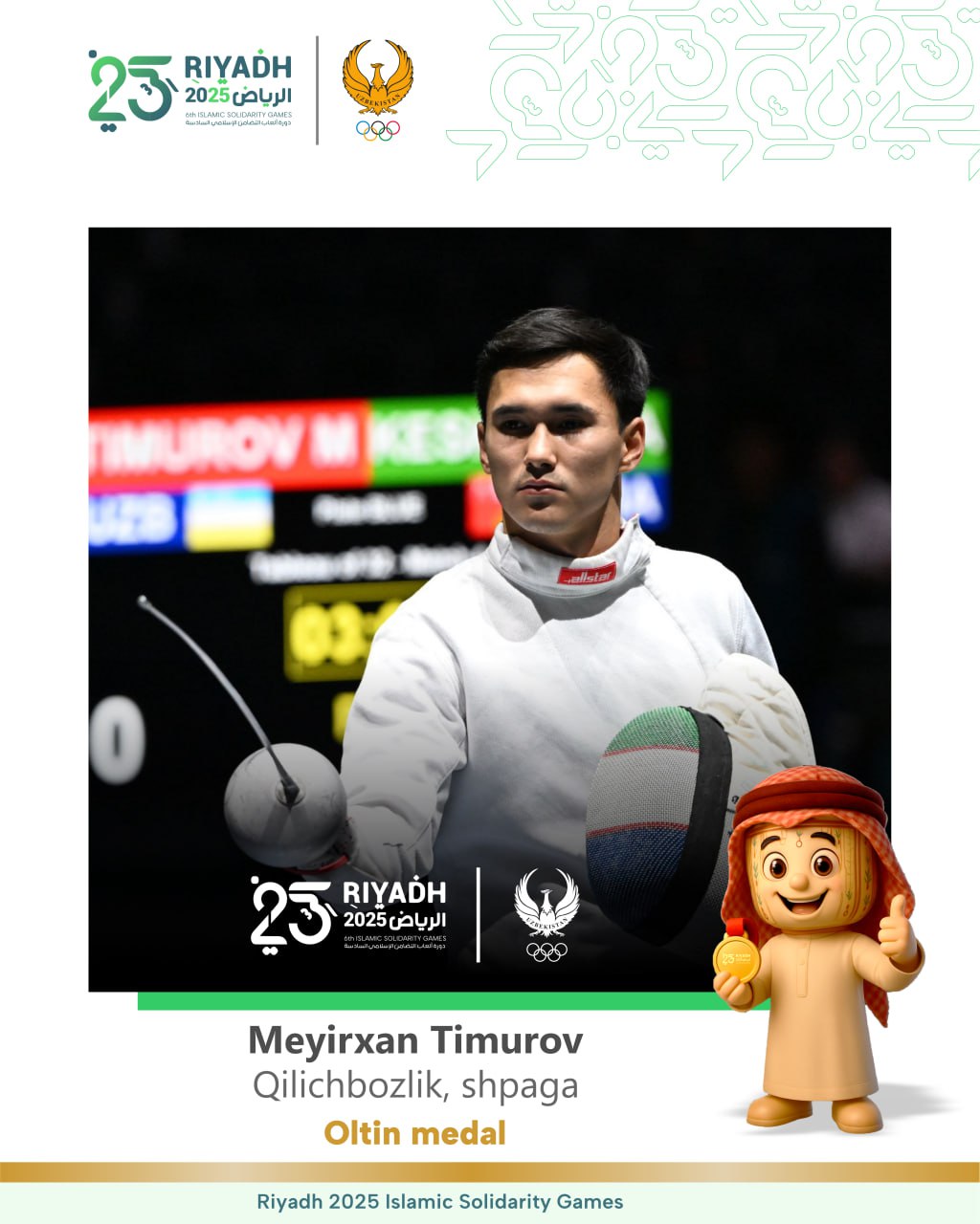 В рамках сегодняшних соревнований VI Игр исламской солидарности Эр-Рияд-2025 делегация Узбекистана з...