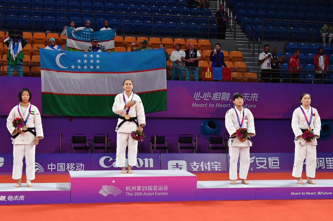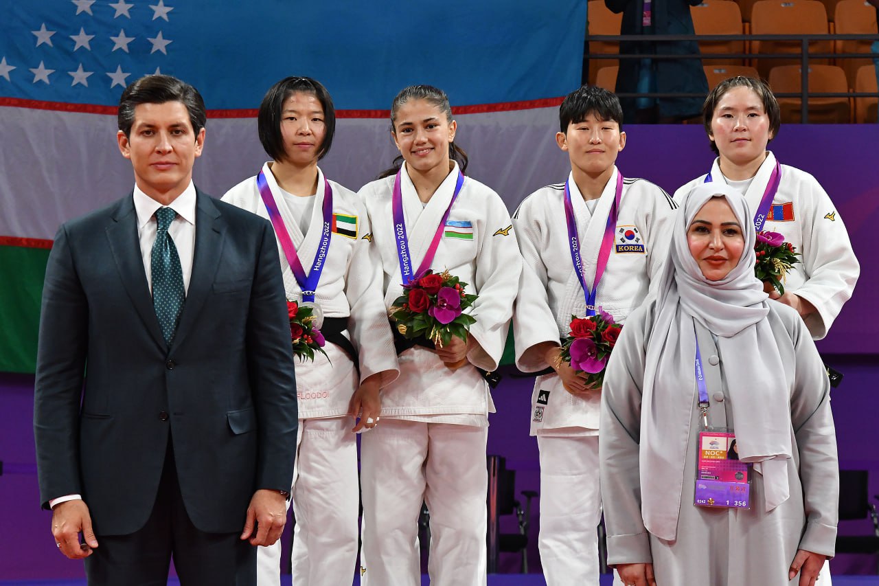 Кун қаҳрамони Диёра Келдиёрова шоҳсупада. Осиё ўйинлари чемпиони олтин медални Осиё Олимпия кенгаши вице-президенти Отабек Умаровдан қабул қилиб олди