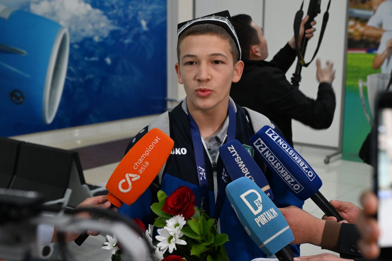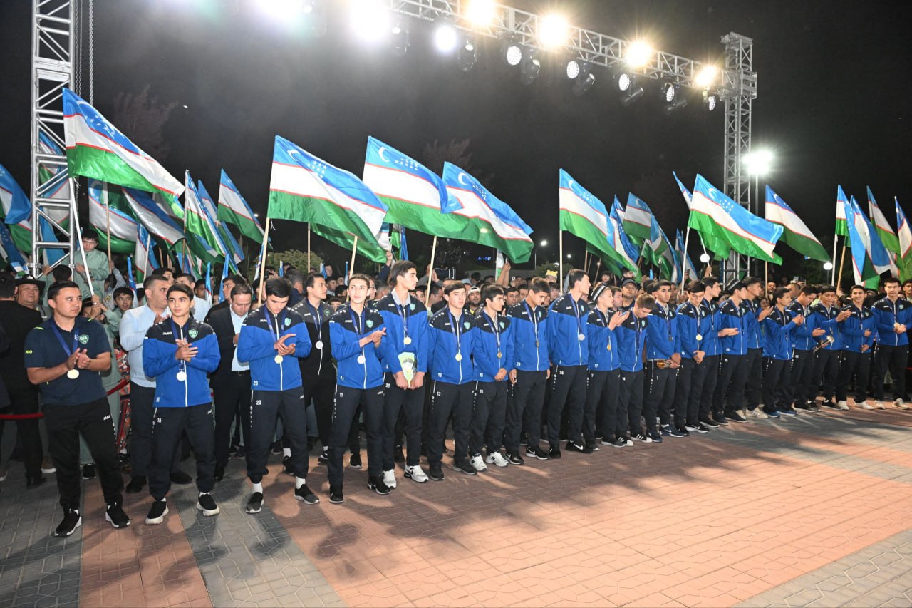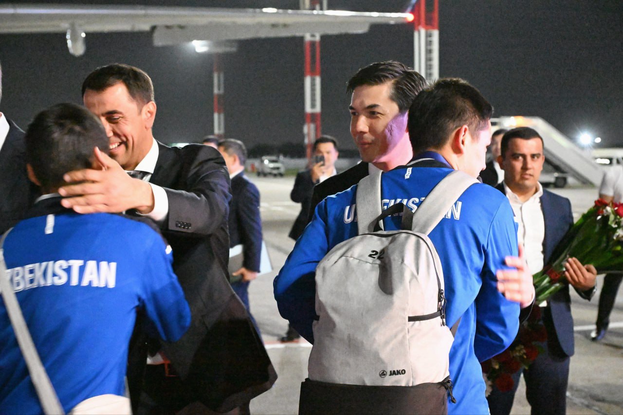Қаҳрамон футболчиларимиз тантанали кутиб олинди