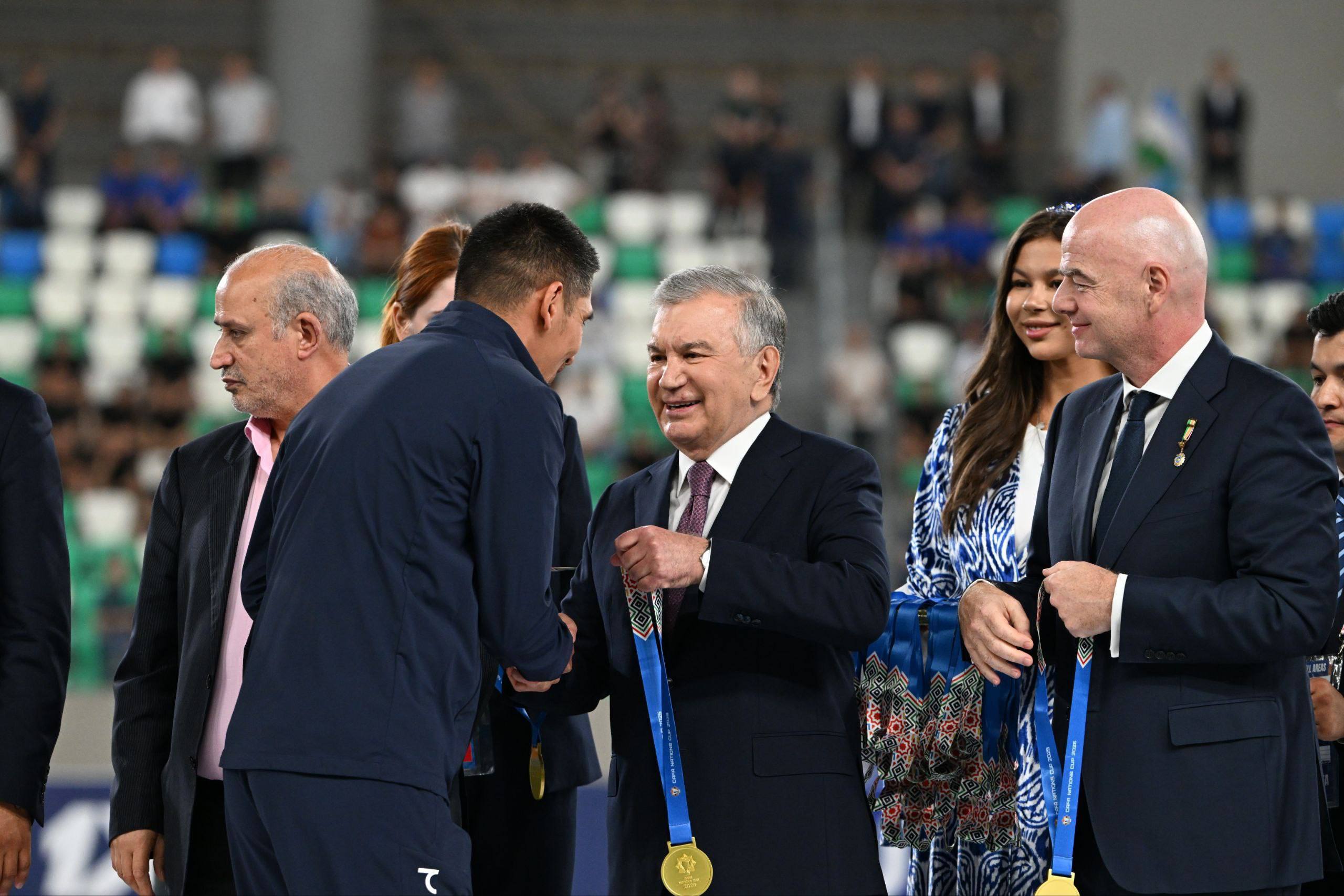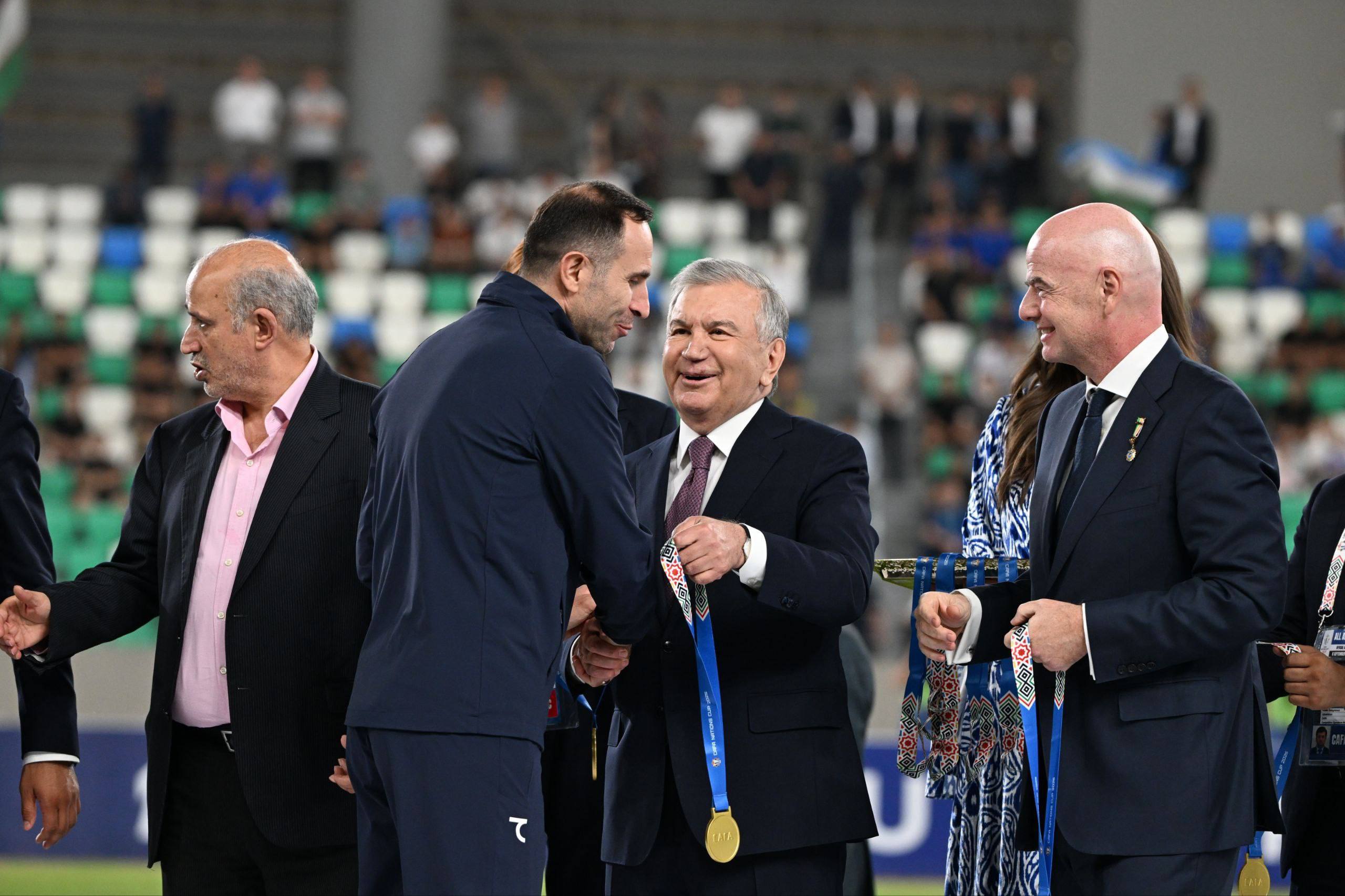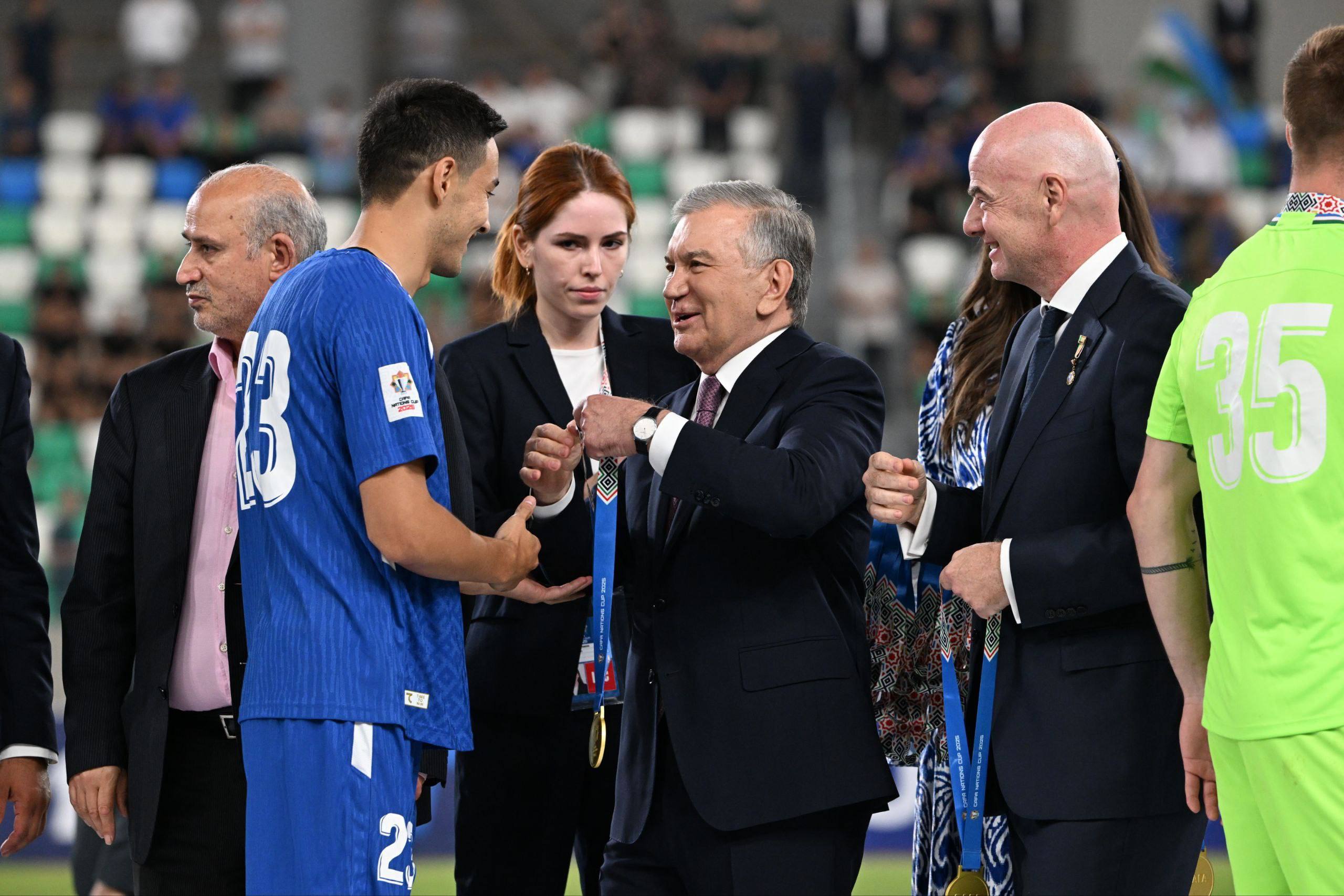CAFA Nations Cup-2025 ғолиби Ўзбекистон терма жамоасини Ўзбекистон Республикаси Президенти, МОҚ раиси Шавкат Мирзиёев ҳамда ФИФА Президенти Жанни Инфантино тақдирлашди