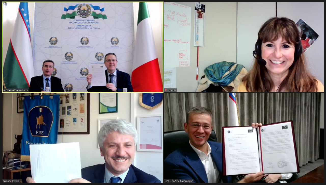 Ўзбекистон йилқичилик ва от спорт федерацияси раиси Баҳромжон Газиев ҳамда Италия от спорти федерацияси раҳбари Марко ди Паоло ўзаро ҳамкорлик меморандумини имзоладилар. Ушбу келишувда ҳамкорлик халқаро даражада олиб борилиши кўрсатилган. Онлайн ўтган мазкур тадбирда Ўзбекистоннинг Италиядаги Фавқулодда ва Мухтор Элчиси Отабек Акбаров ҳам қатнашди.