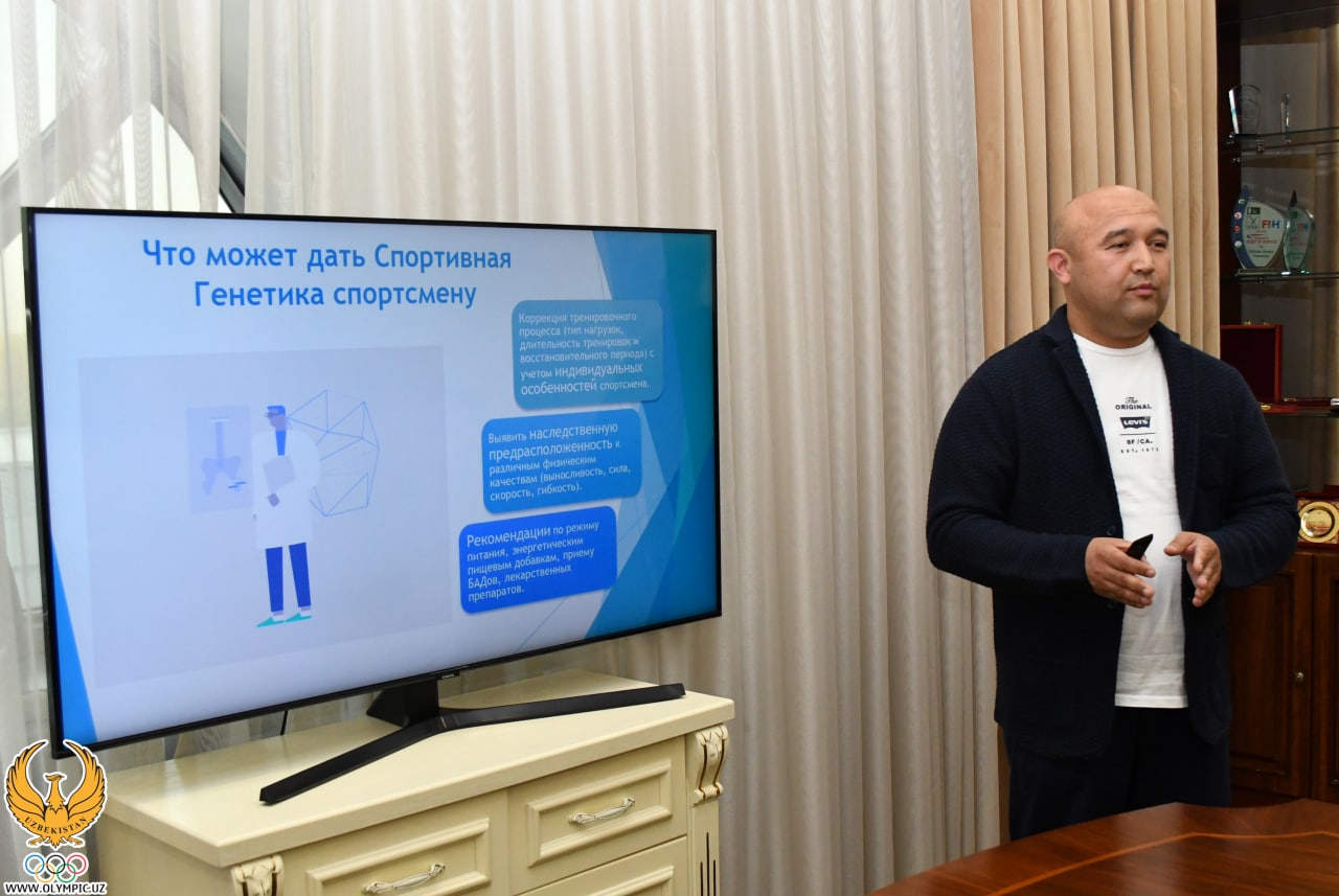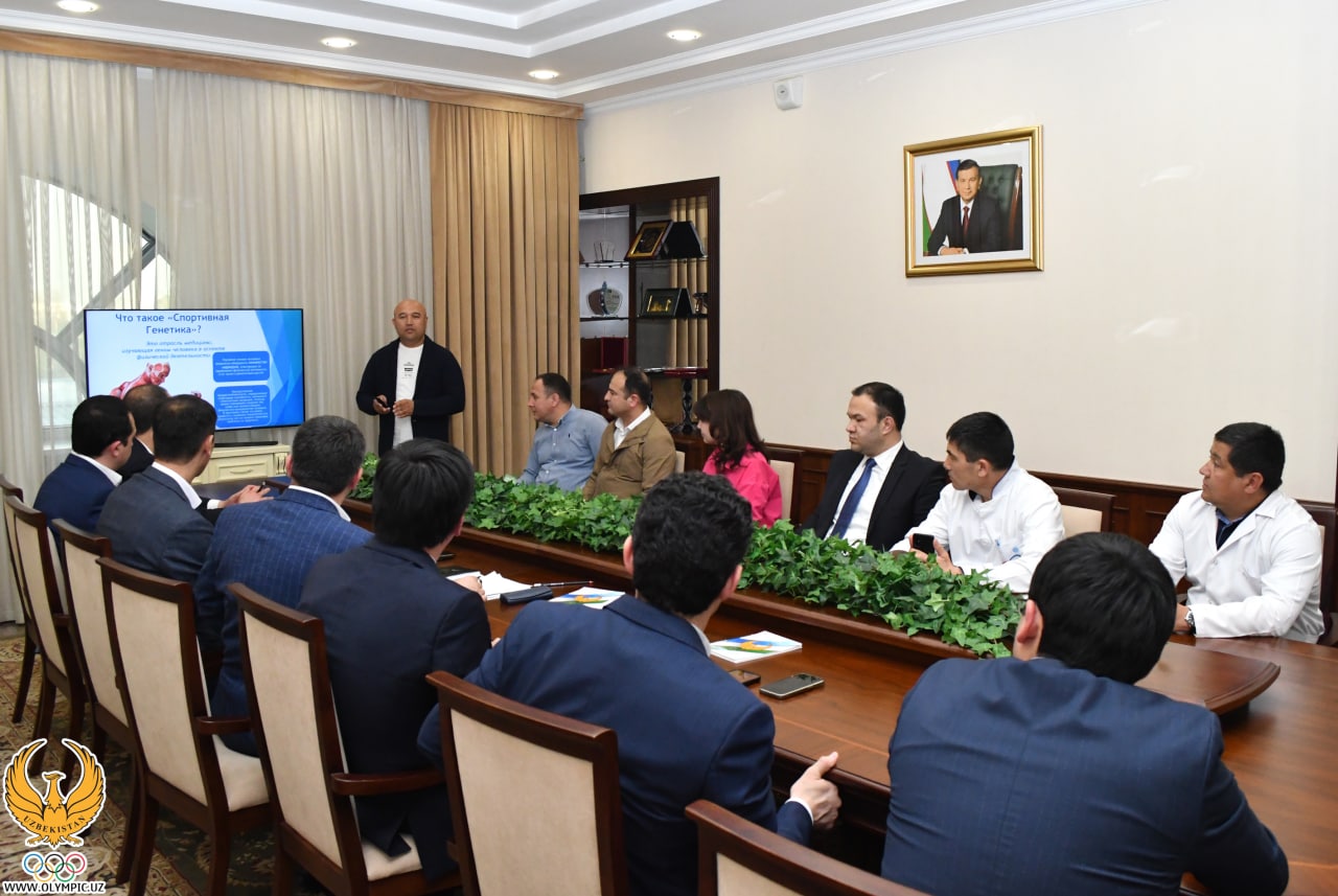 Ўзбекистон Миллий Олимпия қўмитасида мазкур соҳани ривожлантириш, терма жамоамиз вакилларининг генетикасини ўрганиш мавзусида йиғилиш ўтказилди. Унда МОҚ қошидаги Республикаси спорт тиббиёти илмий-амалий маркази мутасаддилари, соҳа шифокорлари генетиканинг замонавий ютуқлари ҳақида батафсил маълумот беришди. Йиғилишда Спортни ривожлантириш вазирининг ўринбосари Шаҳрулло Маҳмудов ва Вазир маслаҳатчиси Аваз Каримов, МОҚ Бош котиби Ойбек Касимов, Қўмита раиси ўринбосарлари Равшан Ирматов, Азизжон Камилов, Шерзод Ташматов, Миллий Паралимпия қўмитаси раиси Мухторхон Ташходжаев иштирок этишди.
