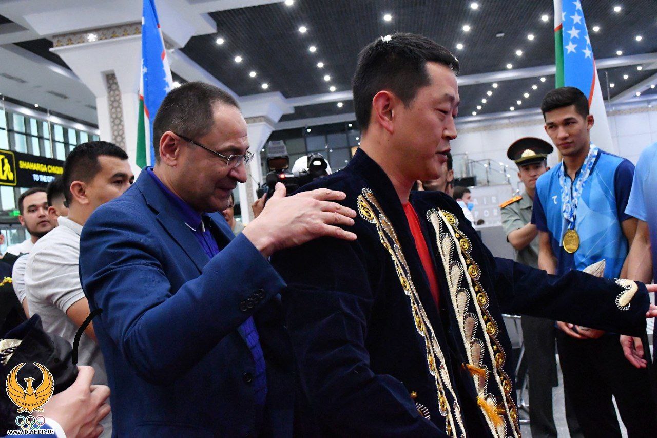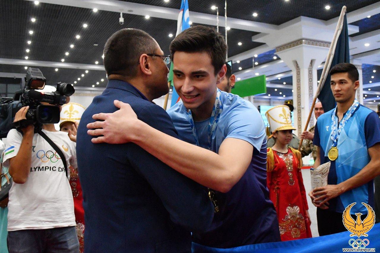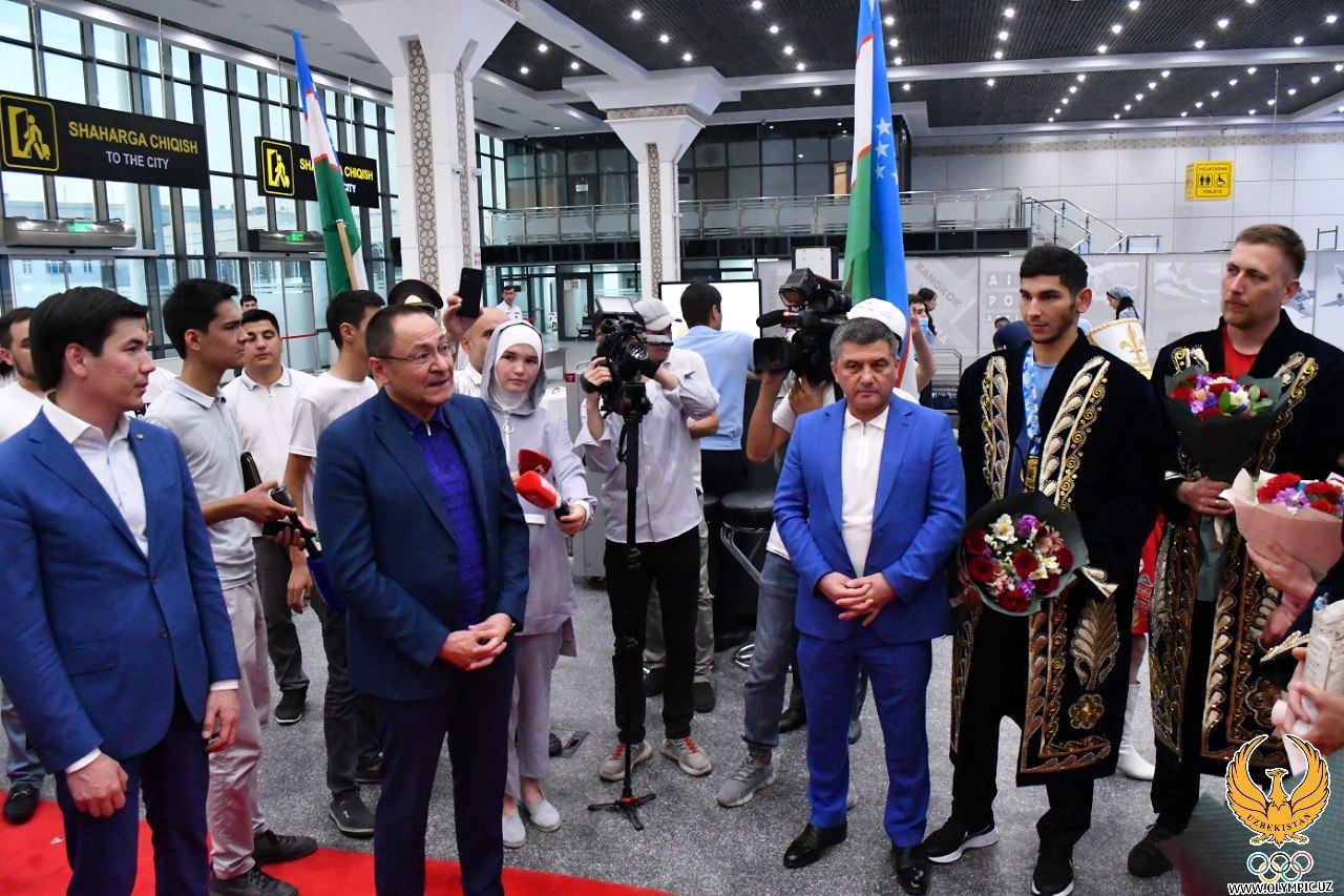 Ислом Каримов номидаги Тошкент халқаро аэропортида ўтган тантанали тадбирда Спортни ривожлантириш вазири Адҳам Икрамов ва унинг ўринбосари Шаҳрулло Маҳмудов, МОҚ Бош котиби Ойбек Касимов, Мудофаа вазирлиги мутасаддилари, спортчиларимизнинг яқинлари ва кўплаб ОАВ ходимлари иштирок этишди.