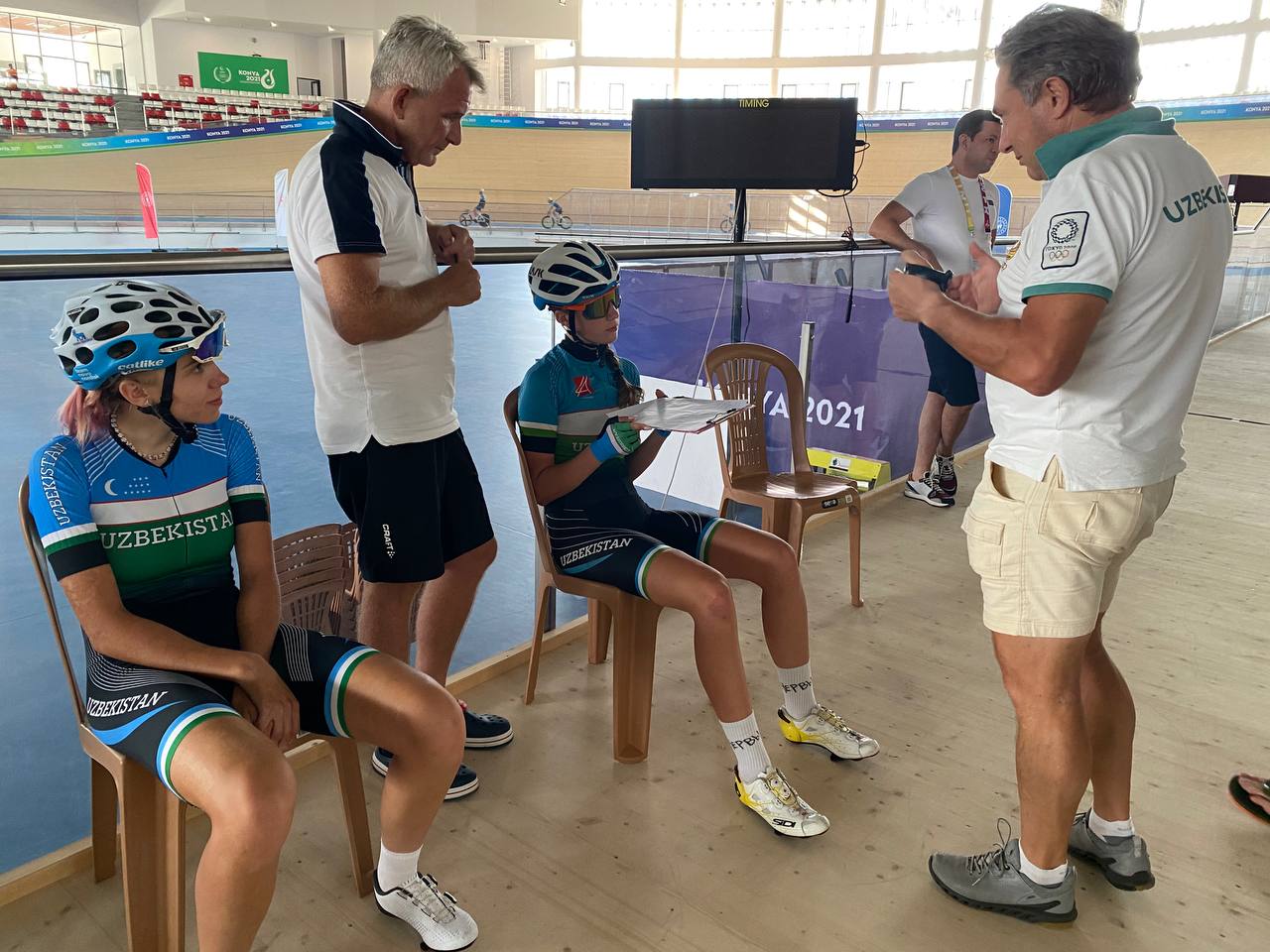Куннинг иккинчи ярмида МОҚ раиси ўринбосари велотрек базасида терма жамоамизнинг машғулотларини кузатди. Жараён давомида Ўзбекистон велосипед спорти федерацияси бош котиби Козим Ўринбойхўжаев ҳамда бош мураббий Глеб Гройсман билан спортчиларимизнинг тайёргарлиги, руҳий ва жисмоний ҳолати ҳақида суҳбатлашди. Эслатиб ўтамиз, мусобақа доирасида дастлаб велотрек бўйича терма жамоамиз 5 августдан баҳсларга киришади.
