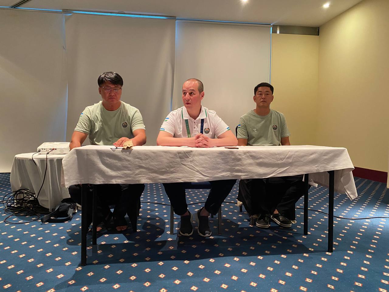 Дастлаб таэквондо бўйича спортчи ва мураббийлар штаби билан йиғилиш ўтказилди. Унда Шерзод Рихсибаевич ҳар бир жамоа вакили билан бирма бир суҳбатлашиб, уларнинг мусобақага олиб борган тайёргарлиги билан танишди. Сўз ўрнида бўлажак у Ислом бирдамлиги ўйинларининг аҳамияти, олдинга қўйилган вазифалар хусусида тўхталиб, барчадан беллашувлар давомида бор куч ва имкониятларини ишга солишларини сўради. Шунингдек, мусобақага тайёргарлик кўриш учун давлатимиз томонидан яратиб берилган шароитлар ҳақида тўхталар экан, бунга муносиб равишда юртимизга чиройли ғалабалар билан қайтиш зарурлигини таъкидлади.