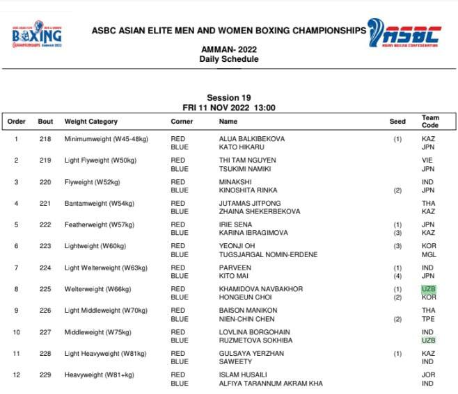 Иорданияда бокс бўйича катталар ўртасидаги Осиё чемпионати ўз ниҳоясига етиб бормоқда.