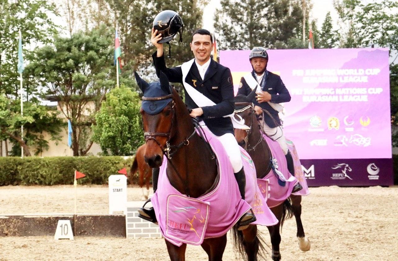 Пойтахтимизда конкур бўйича “Eurasia league Tashkent 2023” турнири ўз якунига етди. Мусобақанинг сўнгги кунида спортчилар асосий йўналиш бўлмиш Гран-при дастурида баҳс олиб боришди. Қувонарлиси, баландлиги 150 смни ташкил этган тўсиқлардан сакраш йўналишида барча совринли ўринлар ҳамюртларимизга насиб этди. Беллашувлар якунида олтин медални тажрибали чавандозимиз Бекзод Қурбонов қўлга киритди. “Мatts V.G.” тулпорида иштирок этган Қурбонов масофани 90.93 сония ичида жарима очколарисиз босиб ўтишга муваффақ бўлди.