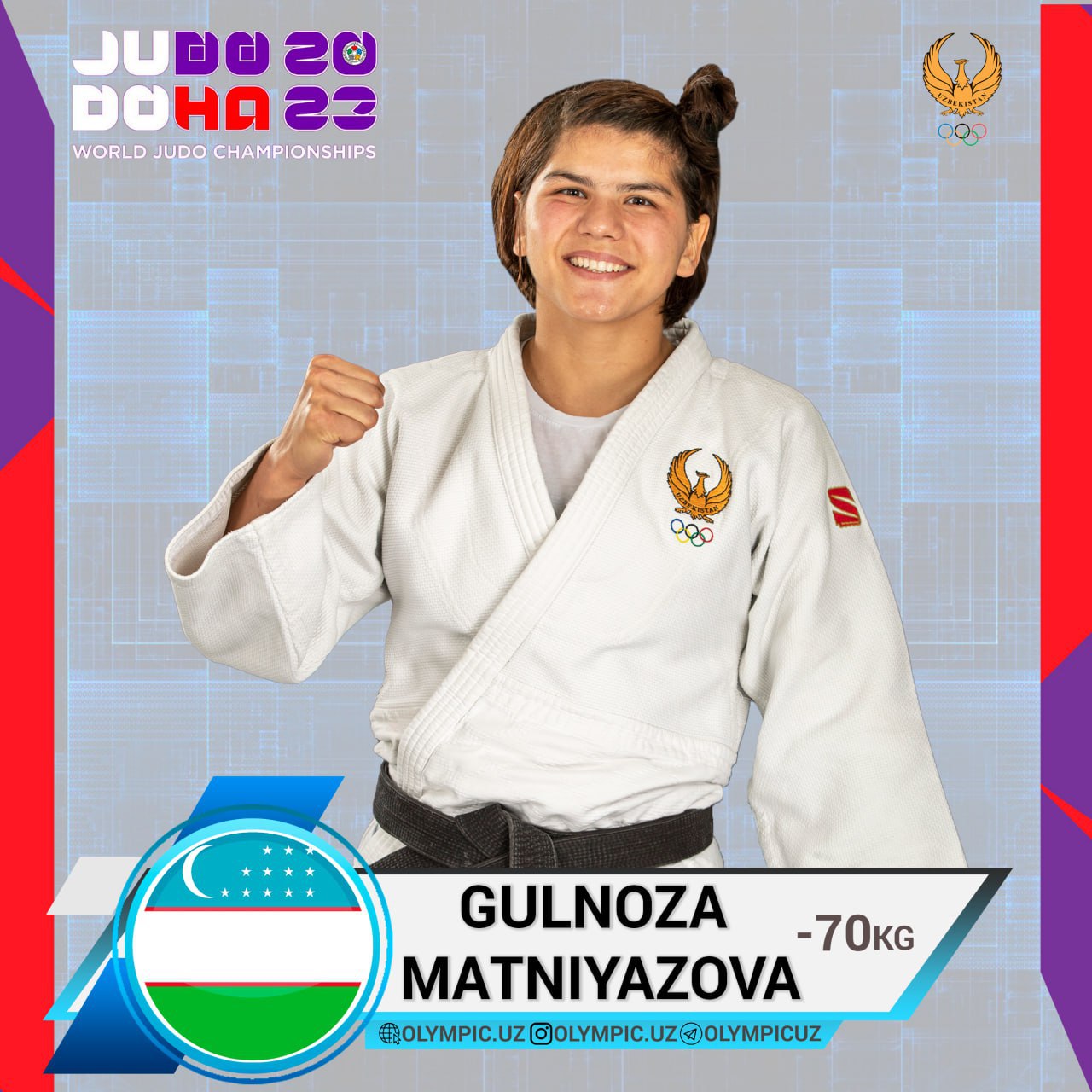 Бугун Қатарда дзюдо бўйича жаҳон чемпионатининг бешинчи кун беллашувлари бўлиб ўтади. Унда Ўзбекистон терма жамоасининг икки нафар вакили татамига чиқади. Қизларимиздан Гулноза Матниязова ҳамда Шоҳиста Назарова -70 кг вазн тоифасида кечадиган беллашувларда юртимиз шарафини ҳимоя қилишади. Дзюдочиларимиз мусобақани қуйидаги рақибларига қарши бошлашади: