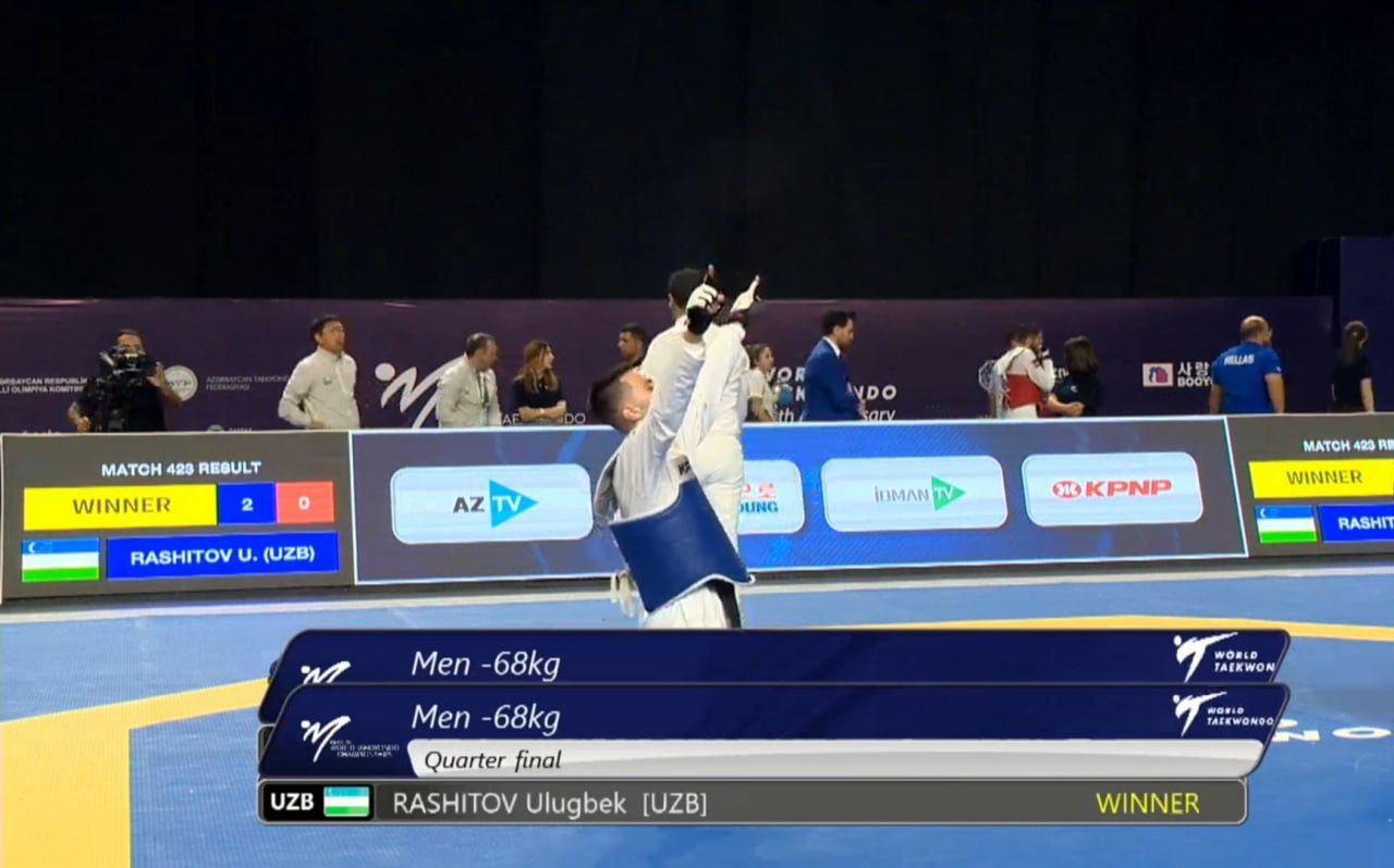 Улуғбек Рашитов жаҳон чемпионатидаги муваффақиятли юришини давом эттирмоқда. Ҳамюртимиз чорак финалда грециялик Константинос Чамалидис устидан ғалаба қозониб, ярим финал йўлланмасини қўлга киритди. Шу тариқа Рашитов камида жаҳон чемпионатининг бронза медалини нақд қилди. Албатта, биз Улуғбекдан фақат чемпионлик кутамиз. Олға, Ўзбекистон!
