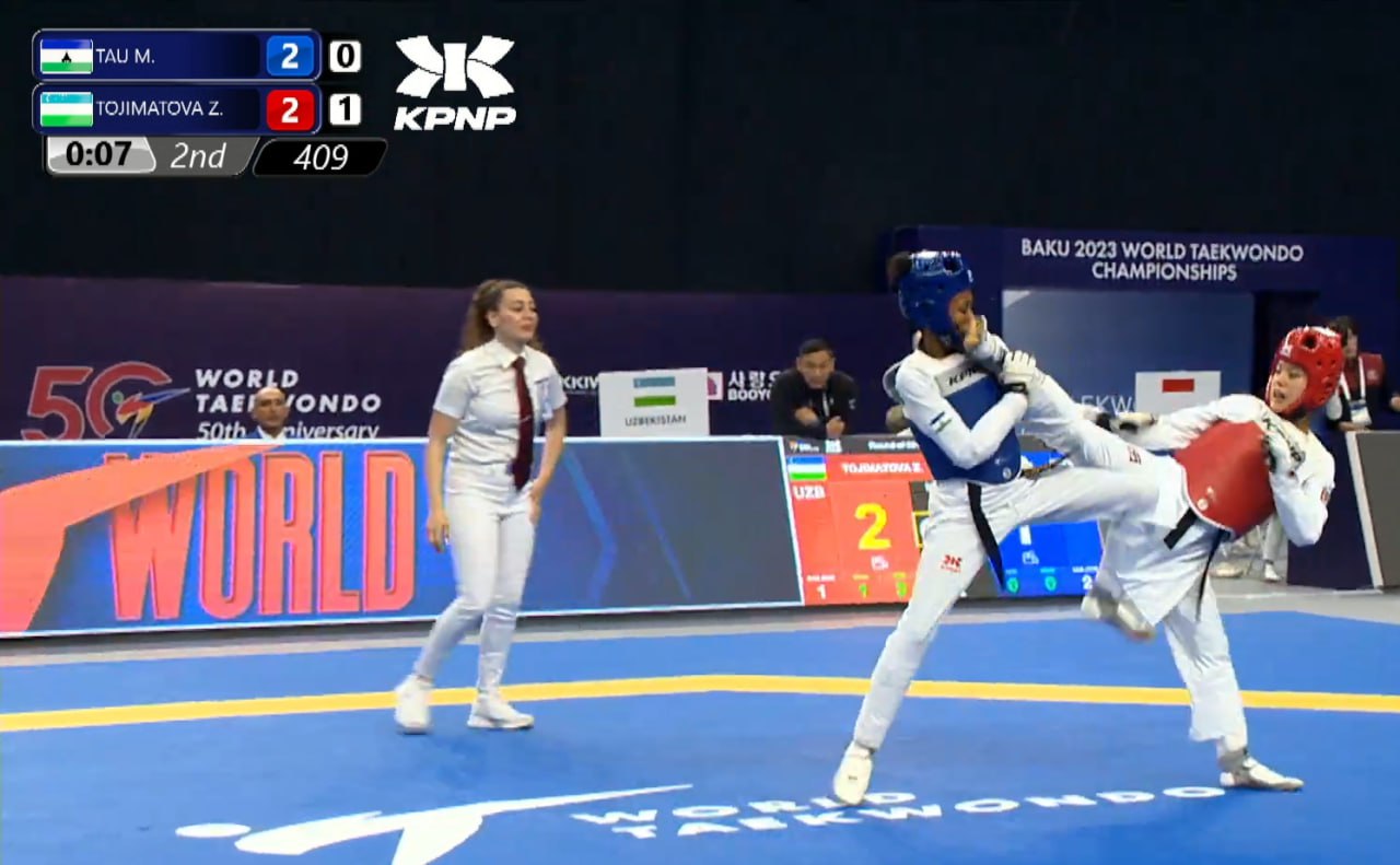 Зуҳра Тожиматова (-46 кг) яна бир ғалабани қўлга киритди. Ҳамюртимиз иккинчи даврада мусобақанинг бешинчи сараланган спортчиси лесотолик Мишель Тауни 2:0 ҳисобида мағлубиятга учратиб, учинчи босқичга йўл олди.