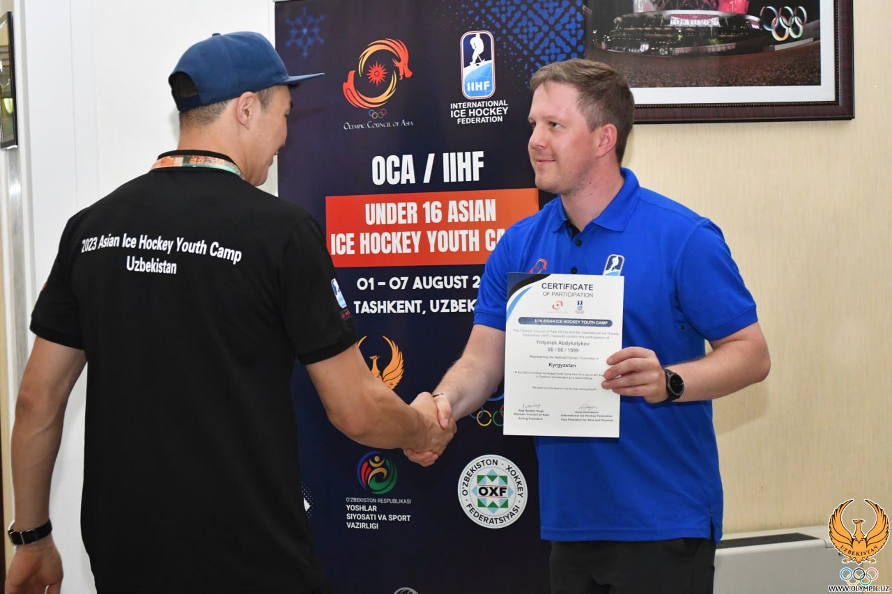 1 август куни пойтахтимизда бошланган “Осиёлик ёш хоккейчилар учун ўқув-машғулот йиғини” лойиҳаси ўз якунига етди. Бугун Ўзбекистон Миллий Олимпия қўмитасида қишки спорт турларида юртимизда илк бор ўтказилган бундай йирик дастур якунига бағишланган тадбир бўлиб ўтди. Унда МОҚ раиси ўринбосарлари Равшан Ирматов ва Шерзод Ташматов, Халқаро муз устида хоккей федерацияси (IIHF) вице-президенти Айваз Омарканов, Ўзбекистон хоккей федерацияси Ижрочи директори Элбек Маҳмудов, Осиё Олимпия кенгаши масъул вакили Тони Тарраф, шунингдек, тадбирда қатнашган ёш хоккейчи ва мураббийлар иштирок этишди.