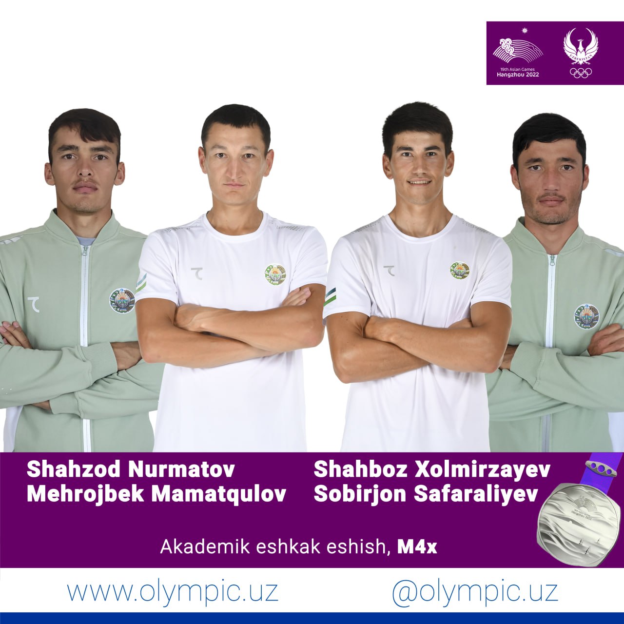 Ўзбекистон делегацияси ўз ғазнасини яна бир кумуш медаль билан бойитмоқда. Академик эшкак эшиш бўйича М4х дастурида стартга чиққан Шаҳзод Нурматов, Шаҳбоз Холмирзаев, Меҳрожбек Маматқулов ва Собиржон Сафаралиев кумуш медални қўлга киритди. Мазкур стартда олтин медаль Хитой, бронза медали Ҳиндистон жамоаларига насиб этди.