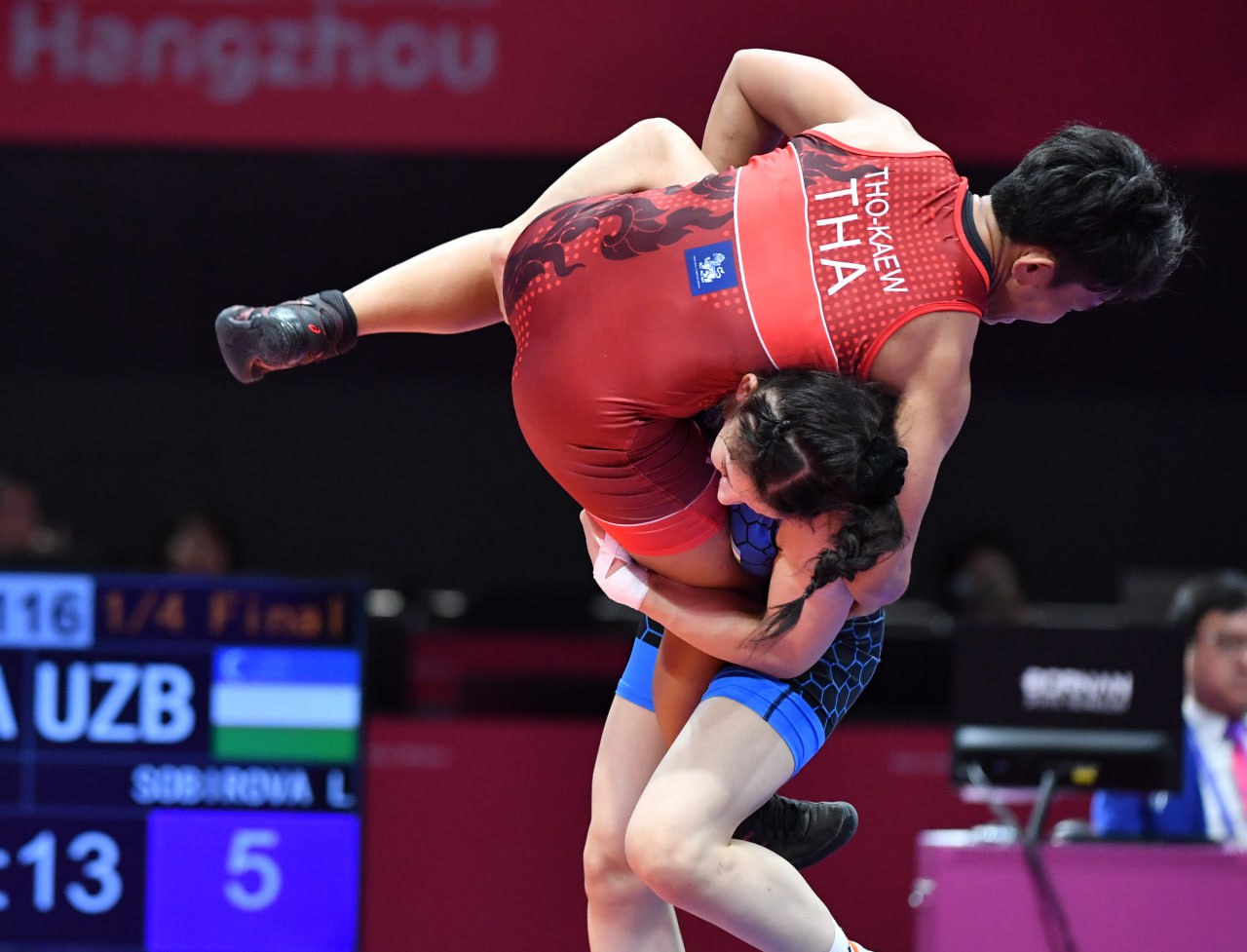 Аёллар кураши баҳсларида ҳамюртимиз Лайло Собирова (-57 кг) ярим финал йўлланмасига эга бўлди. Чорак финалдан баҳсларга киришган спорчтимиз ушбу босқичда таиландлик Срипрапа Каевни 9:0 ҳисобида мағлубиятга учратди. Энди у финал йўлланмаси учун япониялик Сугуми Сакураи билан беллашади.