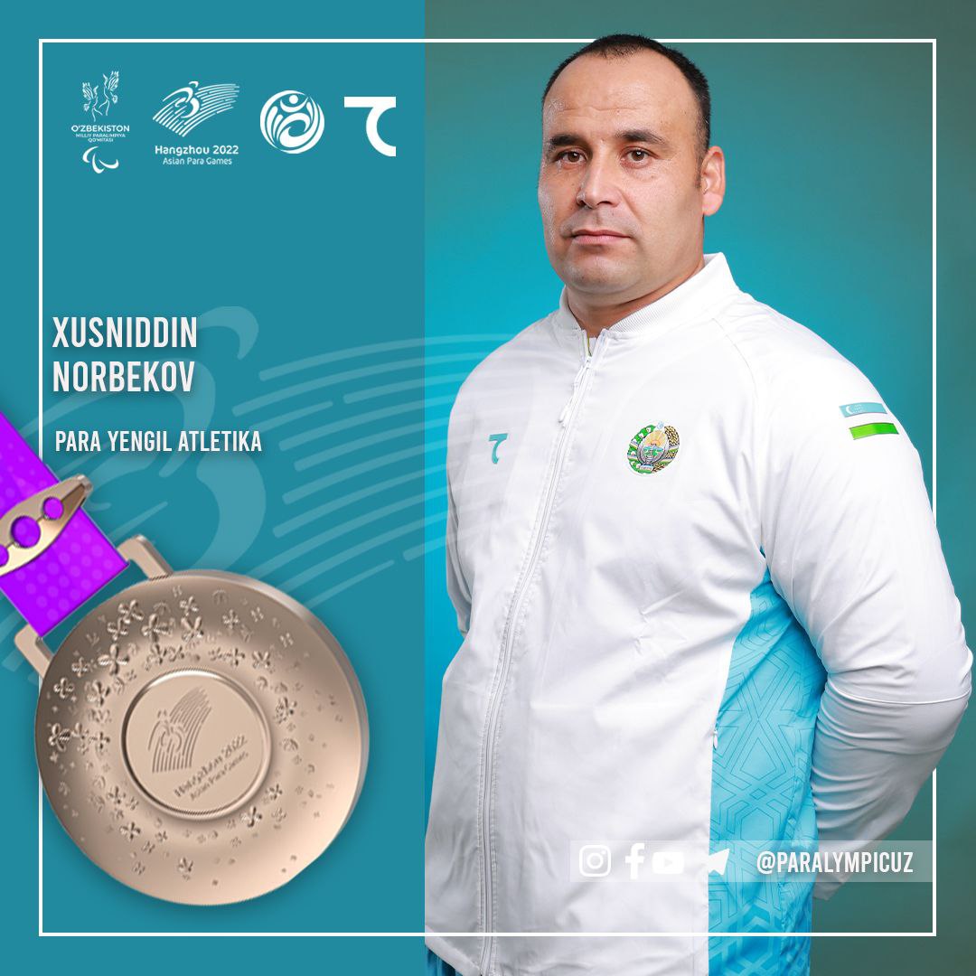 Тажрибали пара-енгил атлетикачимиз Ҳусниддин Норбеков Пара Осиё ўйинларида ўзининг бешинчи медалига сазовор бўлди. Эркаклар ўртасида F35 классида ядро улоқтириш баҳсларида иштирок этган ҳамюртимиз 15.90 метр натижа билан бронза медали соҳибига айланди.