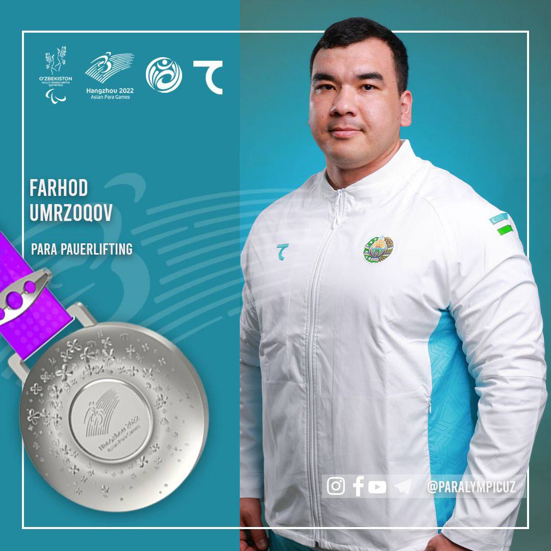 Пара-пауэрлифтинг бўйича Ўзбекистон терма жамоаси аъзоси Фарҳод Умрзоқов кумуш медаль соҳибига айланди. Эркаклар ўртасида -97 кг вазн тоифасида қатнашган ҳамюртимиз 228 кг натижа билан шоҳсупанинг иккинчи поғонасидан жой олди.