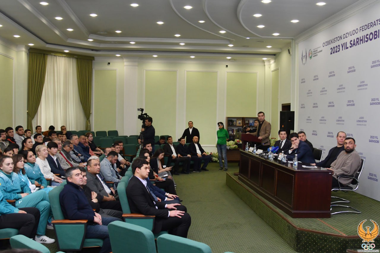 Тадбир аввалида федерация Бош котиби Азизжон Собиров 2023 йил амалга оширилган ишлар бўйича тақдимот ўтказди. Унга кўра, спортчиларимиз йил давомида ўтган турли ёш тоифаларидаги халқаро мусобақаларда жами 99 та олтин, 72 та кумуш ва 149 та бронза медалларини қўлга киритишган. Шунингдек, мутахассис дзюдо мактабларининг фаолияти, юртимиз бўйлаб ушбу спорт оммавийлигини ошириш бўйича қилинаётган ишларга ҳам тўхталиб ўтди.