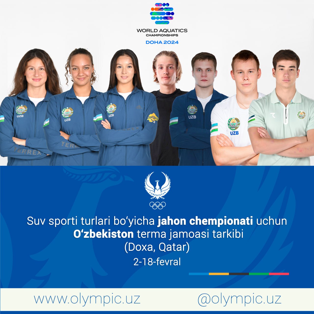 Ўзбекистон сузиш федерацияси 2-18 февраль кунлари Қатарда ўтадиган сув спорти турлари бўйича жаҳон чемпионатида иштирок этадиган спортчилар рўйхатини эълон қилди. Унга кўра, атлетларимиз сузиш, сувга сакраш ва синхрон сузиш йўналишларида юртимиз шарафини ҳимоя қилишади. Дохада ўтадиган баҳсларда қатнашадиган таркибимиз қуйидагича:
