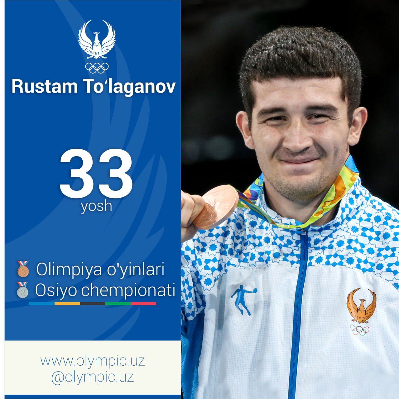 Бугун ўзбек оғир атлетикасининг юлдузи, Токио-2020 ёзги Олимпия ўйинлари чемпиони ва рекордчиси, Париж-2024 ёзги Олимпия ўйинларининг кумуш медали соҳиби, икки карра жаҳон чемпиони, “Ўзбекистон Республикасида хизмат кўрстатган спортчи” ва “Ўзбекистон ифтихори” фахрий унвонлари соҳиби Акбар Жўраев, шунингдек, бокс бўйича Рио-2016 ёзги Олимпия ўйинларининг бронза медали соҳиби, Осиё чемпионатининг совриндори, “Ўзбекистон Республикасида хизмат кўрсатган спортчи” фахрий унвони эгаси Рустам Тўлаганов таваллуд айёмларини нишонлашмоқда.