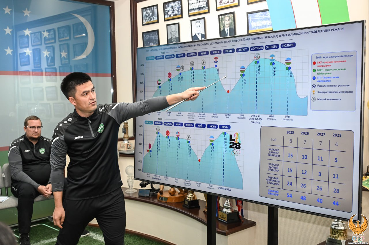 Футбол бўйича Ўзбекистон олимпия терма жамоаси Париж-2024 лицензияларини қўлга киритиб, делегациямиз таркибида 4 йилликнинг энг нуфузли мусобақасига биринчи бор ўйин спорт турларидан йўлланма олган жамоага айланди. Бугун куннинг иккинчи ярмида футболчиларимизнинг Лос-Анжелес-2028 ёзги Олимпия ўйинларига ҳам йўлланма олиш имкониятлари ва бунинг учун ишлаб чиқилган режа муҳокама марказида бўлди.