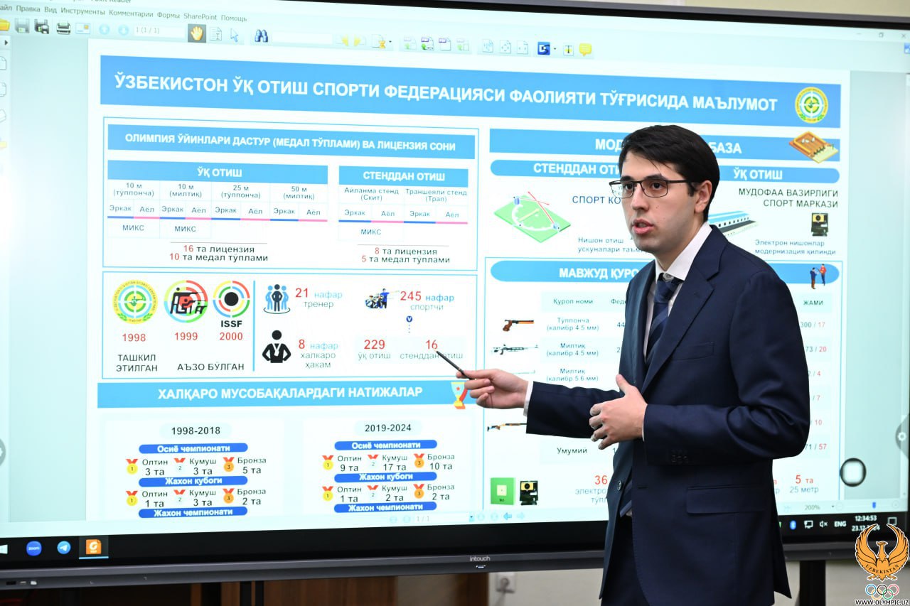 Шундан сўнг Ўзбекистон ўқ отиш федерациясининг Лос-Анжелес-2028 ёзги Олимпия ўйинларига тайёргарлик режаси кўриб чиқилди. Унда спортчиларимизни литсензион мусобақаларга тайёрлаш, терма жамоа моддий техник-базасини янада яхшилаш борасида тавсиялар илгари сурилиб, бу борада амалга оширилиши лозим бўлган ишлар белгилаб олинди.