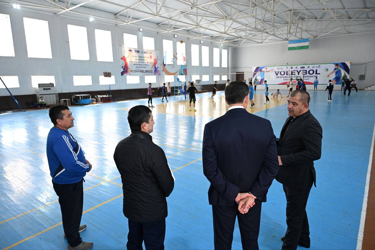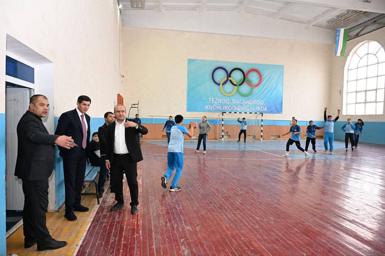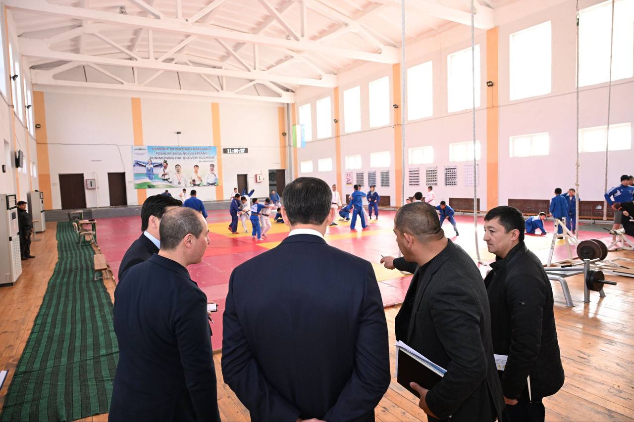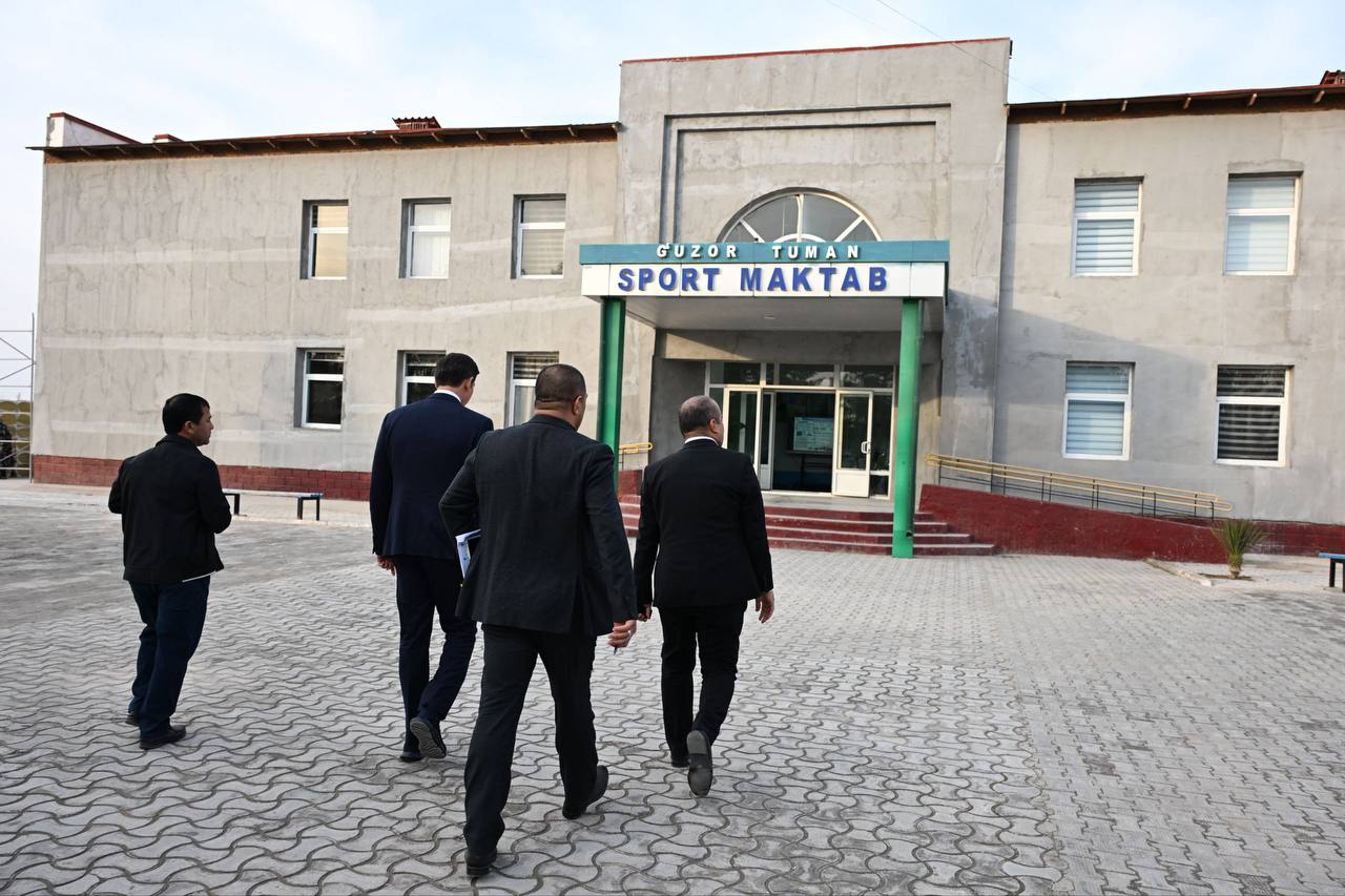 Шунингдек, Ғузор туманидаги спорт мактаби ҳамда миллий ва олимпия спорт турларига ихтисослаштирилган мактаб-интернати ҳам кўздан кечирилди. Режа кўра, мактаб-интернатлари келгусида Президент қарори билан Олий спорт маҳорати мактабига айлантирилиши кутилмоқда. Шундан келиб чиққан ҳолда муассасадаги ўқувчиларнинг қишки аттестация натижалари ва янги тизимга ўтиш жараёни таҳлил қилинди. Қолаверса, расмийлар мактаб-интернатининг ҳовлисига кўчат экиб, унинг келгусида янада чирой очишига ҳисса қўшишди.