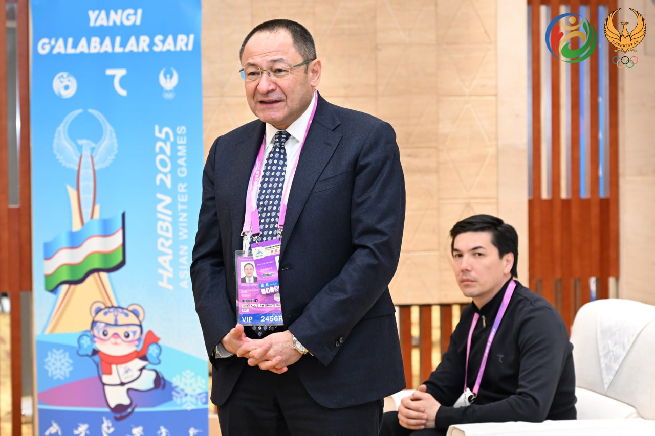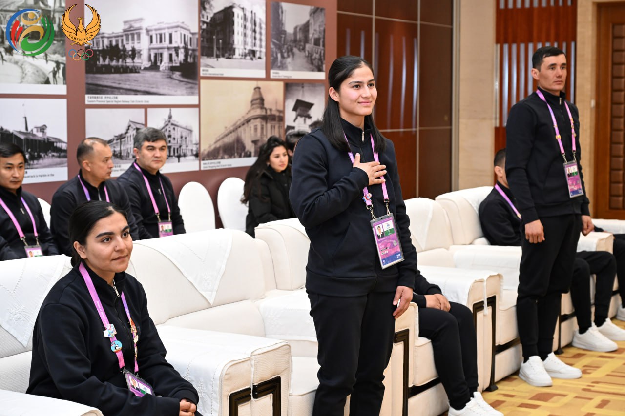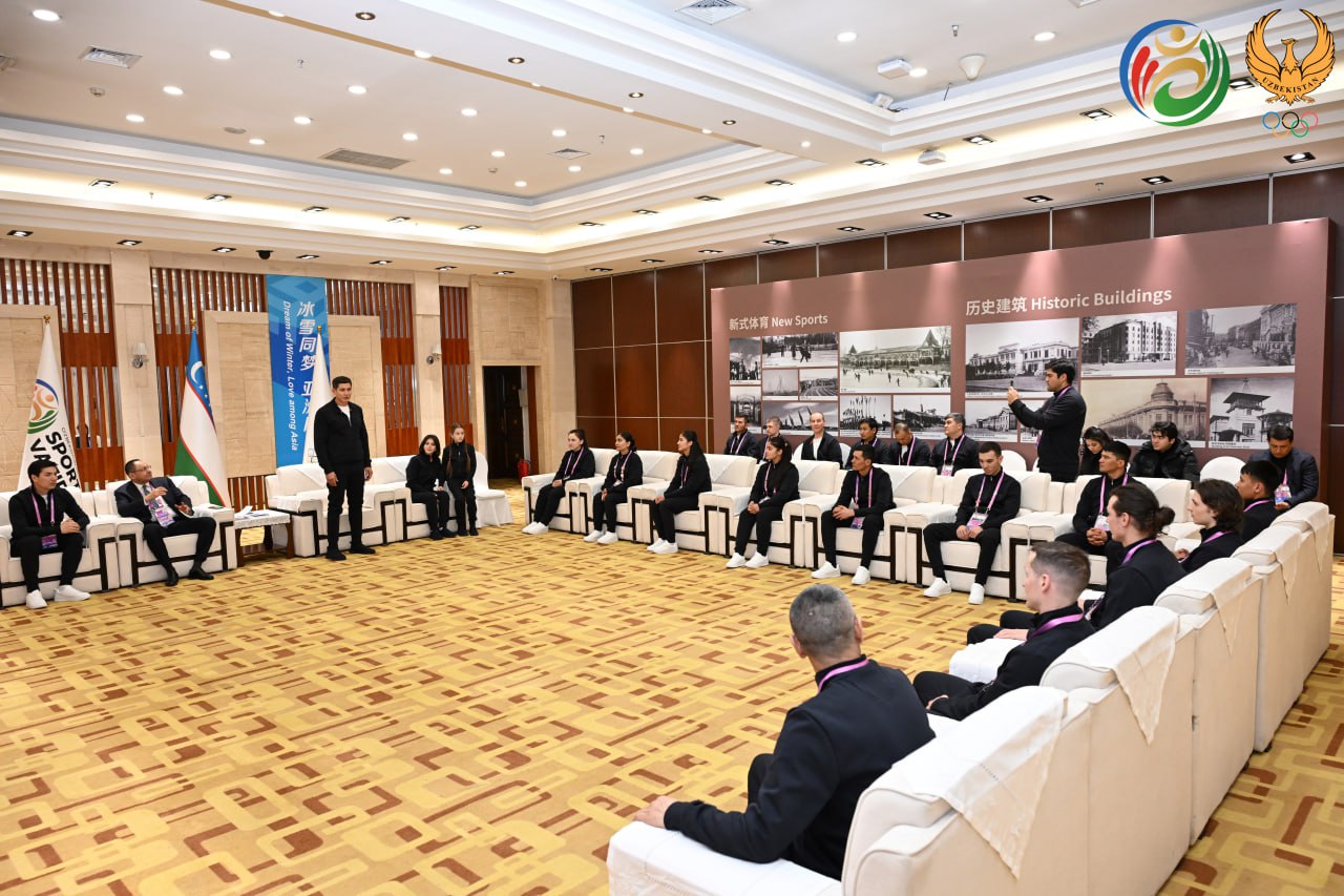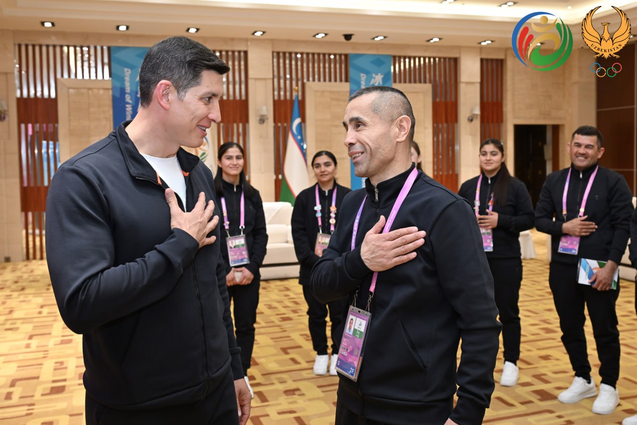 Спорт вазири Адҳам Икрамов ва Осиё Олимпия кенгаши вице-президенти, МОҚ раисининг биринчи ўринбосари Отабек Умаров бошчилигидаги Ўзбекистон делегацияси раҳбарияти спортчи ҳамда мураббийлар билан учрашишди ва уларга бўлажак беллашувларда омад тилади.