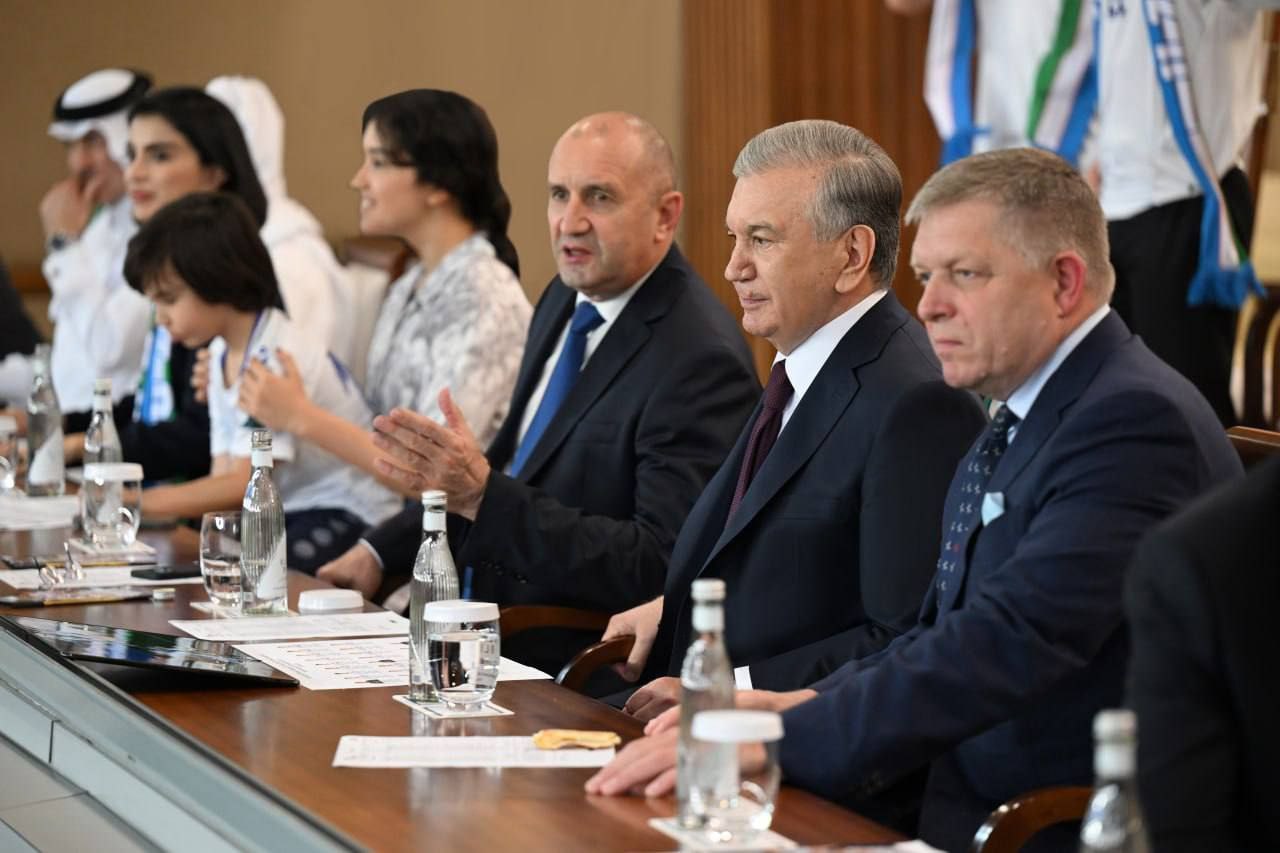 Президентимиз билан ўйинни Болгария Президенти Румен Радев ва Словакия Бош вазири Роберт Фицо ҳамда Марказий Осиё мамлакатлари ҳукумат раҳбарлари биргаликда кузатди.