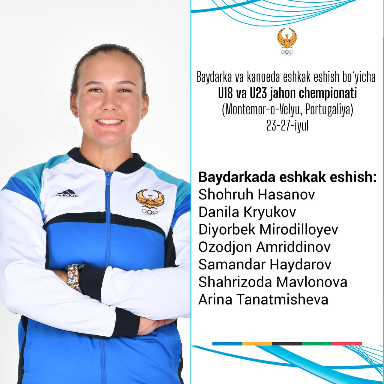 Бугун Португалиянинг Монтемор-о-Велю шаҳрида байдарка ва каноэда эшкак эшиш бўйича U18 ва U23 ёш тоифаларидаги жаҳон чемпионати старт олади. 27 июлга қадар давом этадиган мусобақада Ўзбекистон терма жамоаси қуйидаги таркибда иштирок этади: